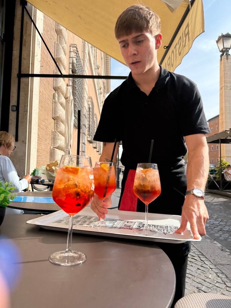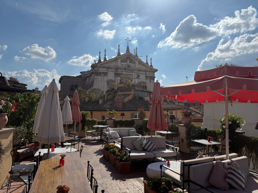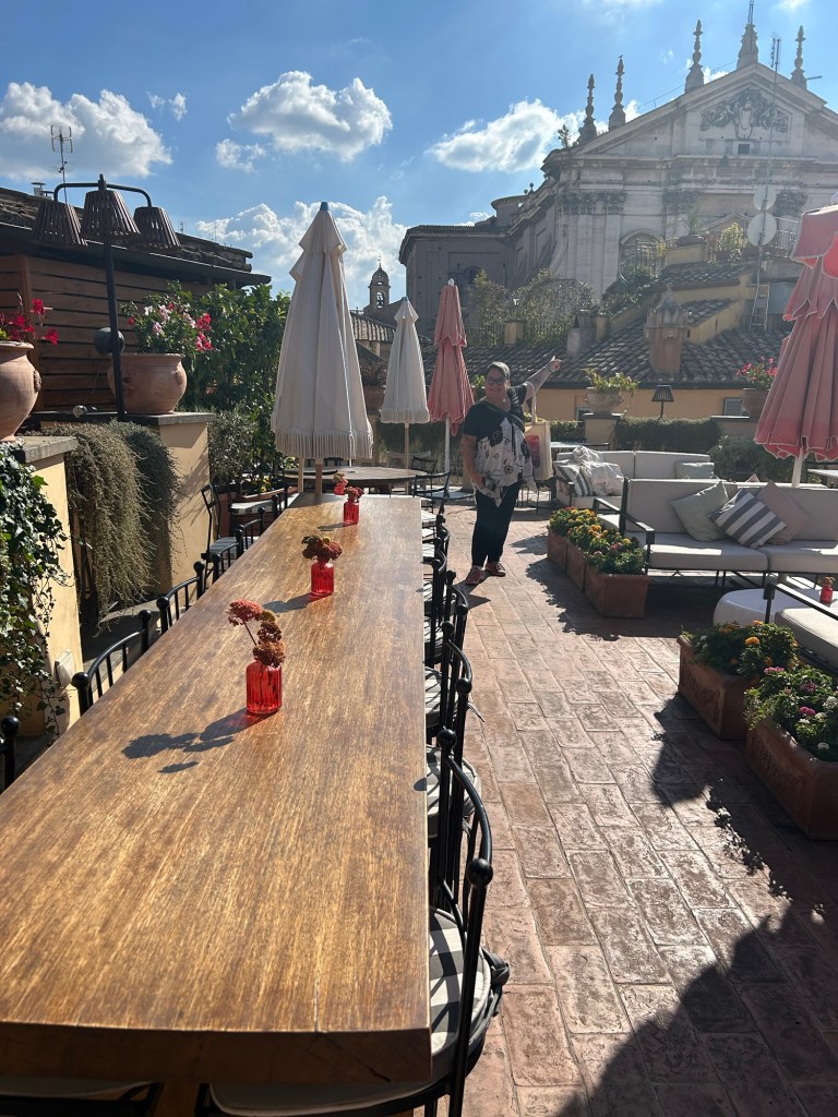 Dave mimicked the tour operators and led the was to find what promised to be an outstanding roof top bar. It was in the oldest hotel in Rome and what a lovely spot!!