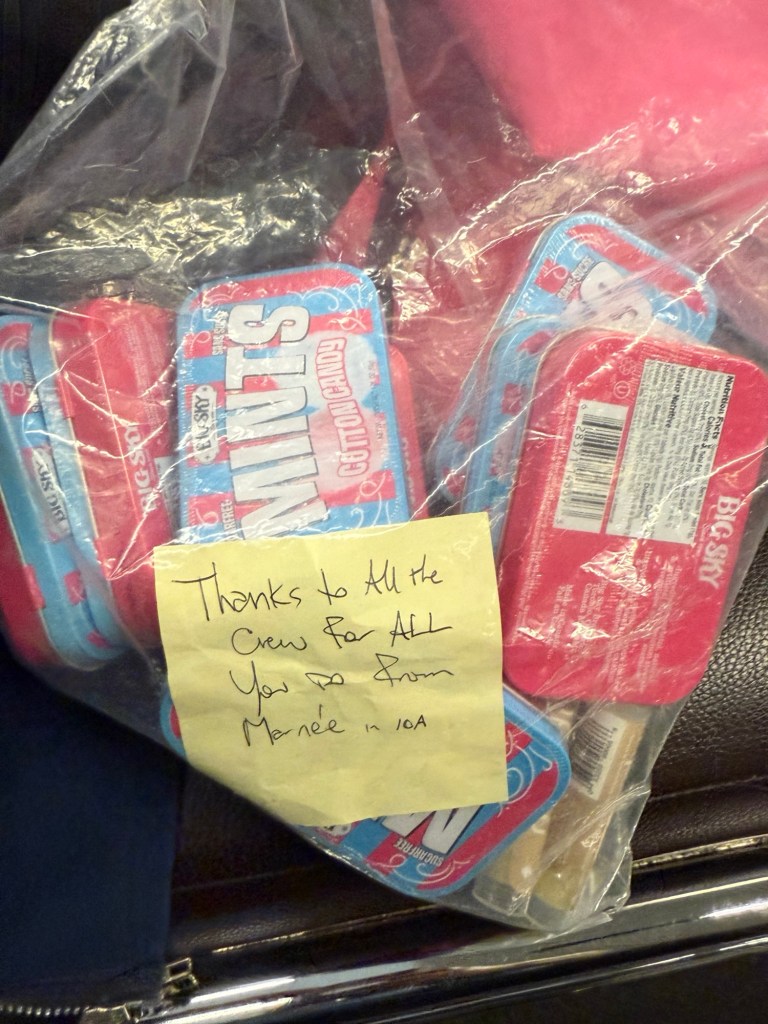 I have charged, read and napped and now we are boarding for Rome. I brought treats for the crew as I am very grateful they are not on strike!