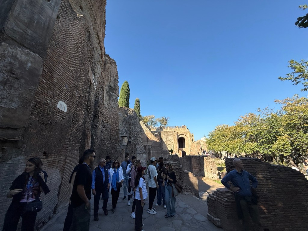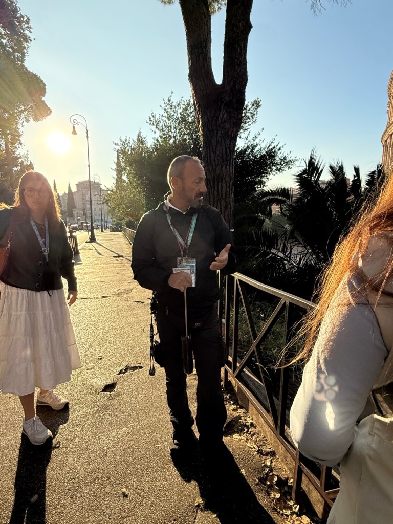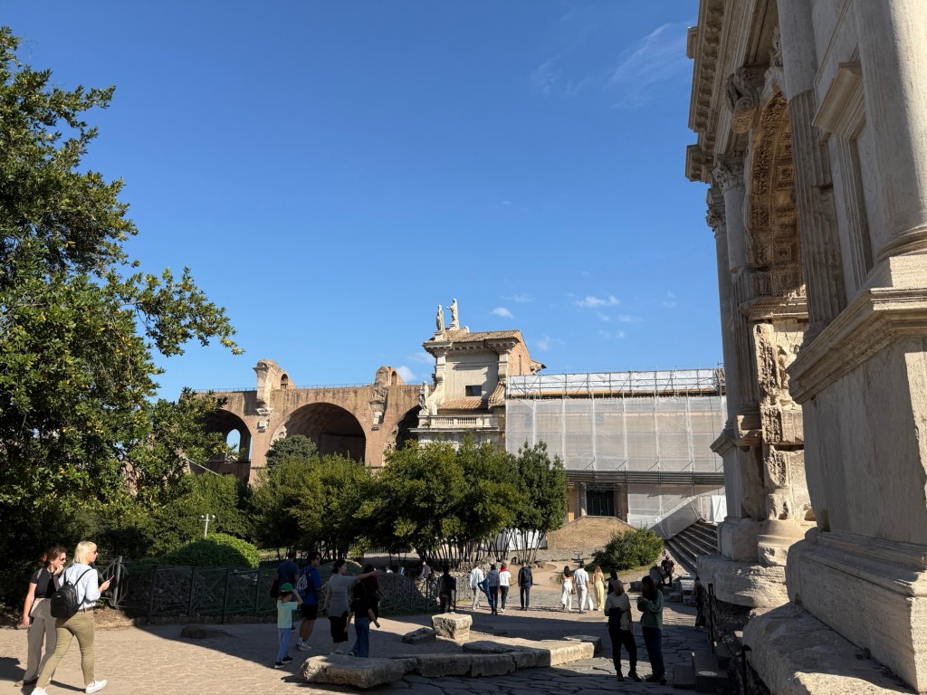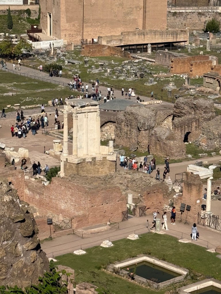 OK, I’m so tired that this is the third time I’m doing this because I keep nodding off and hitting the daily close instead of publish button so I am very sorry but I’m just about to post a whole raft of pictures after telling you that we started off the day with an incredible tour through devour tours. Fabrizio is a published person who knows everything m, he was incredible. His voice was great and we had earbuds and we walked around and listened to him telling us for three hours about the Colosseum, Palantine Hill, and the Forum”.