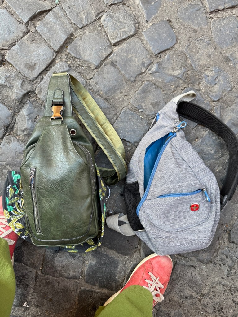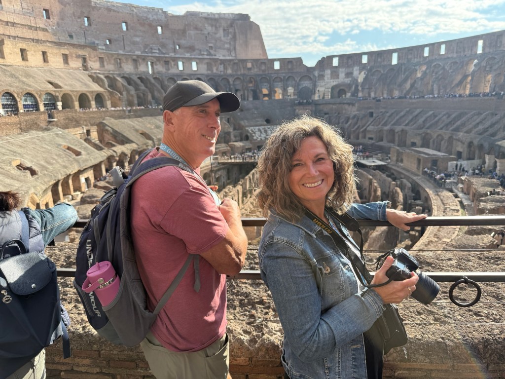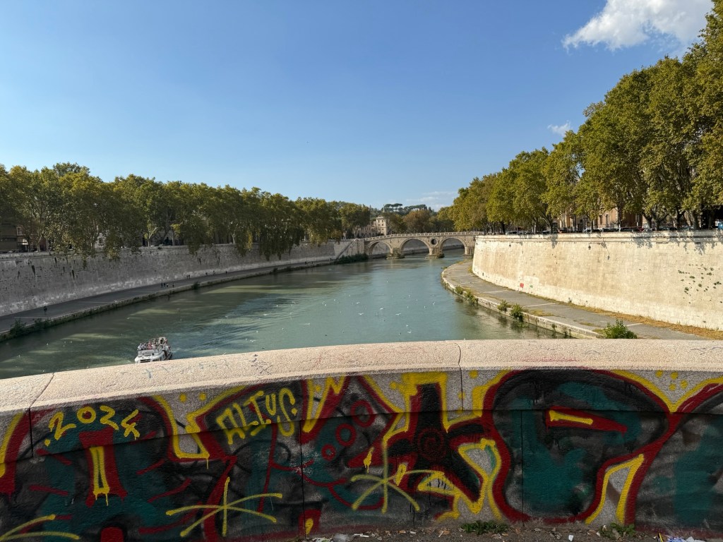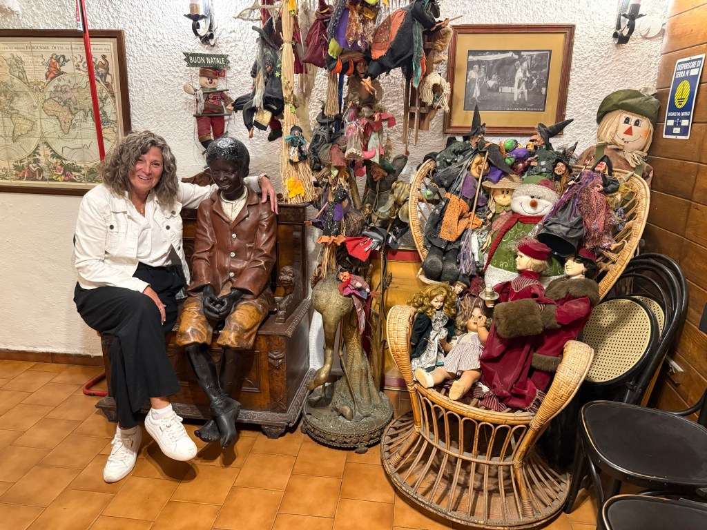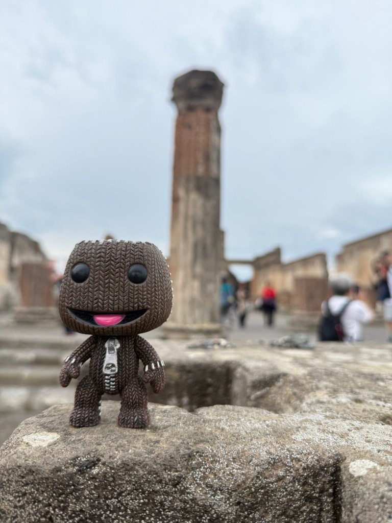 I am so frustrated for you right now because I had this post all ready to go and then I knocked my phone off the bed and dropped it and deleted the draft so I apologize in advance, but I don’t want to miss putting up any of my pictures because I want them to be there forever. If and when I have opportunity, I will fill in more of the blanks but suffice to say we started the day by taking a cab to meet with Fabrizio, who took us on an amazing three hour tour of the Colosseum, Palentine Hill, and the Forum. We had ear pieces and receivers so that we could listen to the very informative narration. After that we went for a nice lunch in an alley which one is want to do. This was followed by a quick peek at the Trevi Fountain which was very busy and then we split ways. I continued walking up to the Lego store so I could get a stamp in my Lego passport and I bought a Vespa for my Sackboy to ride because I haven’t brought him out very often this trip and I’m feeling guilty. I also broke the zipper on my bag which I had used since my trip to Peru in 2013 so I found a street vendor with a lovely green one that I wanted for €45. I transferred all my stuff into it and then went down the next alley and tossed away my old bag in a garbage can. Then it was just walk about half an hour back to our air bnb. It was a beautiful walk. I crossed the river Tiber and enjoyed the people and the scenery along the way. I did manage to mess up by rolling two or three times on the cobblestone but neither ankle suffered from such things. I stopped at a cute little clothing market, a pop-up, we would call at home and I purchased a cute linen white skirt for our white night on the ship and then came back to the room to strip from all of my hot body clothes and built my Vespa for my Sackboy then I was trying to have a nap, but I don’t remember if I actually did it before the door opened and Dave and Deb were back. I said yes that we head for something to eat soon as I have been neglecting myself.. once I got ready we walked down the main road here that we are on and found a spot that looked relatively reasonable and delicious. it turned out that we had the best servers around, the food was soooo good and we had a good talk. It got a bit emotional for me as I brought up a conversation that I had shut down earlier. Dave apologized and I bought us a fancy bottle of delicious wine to bring back and share.