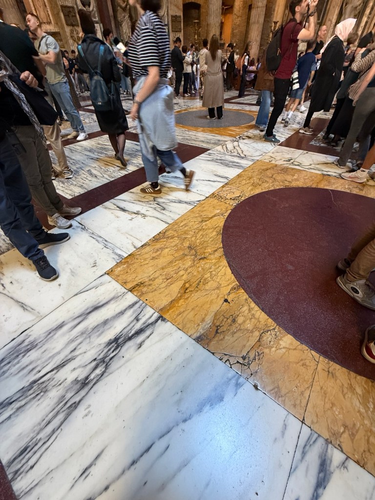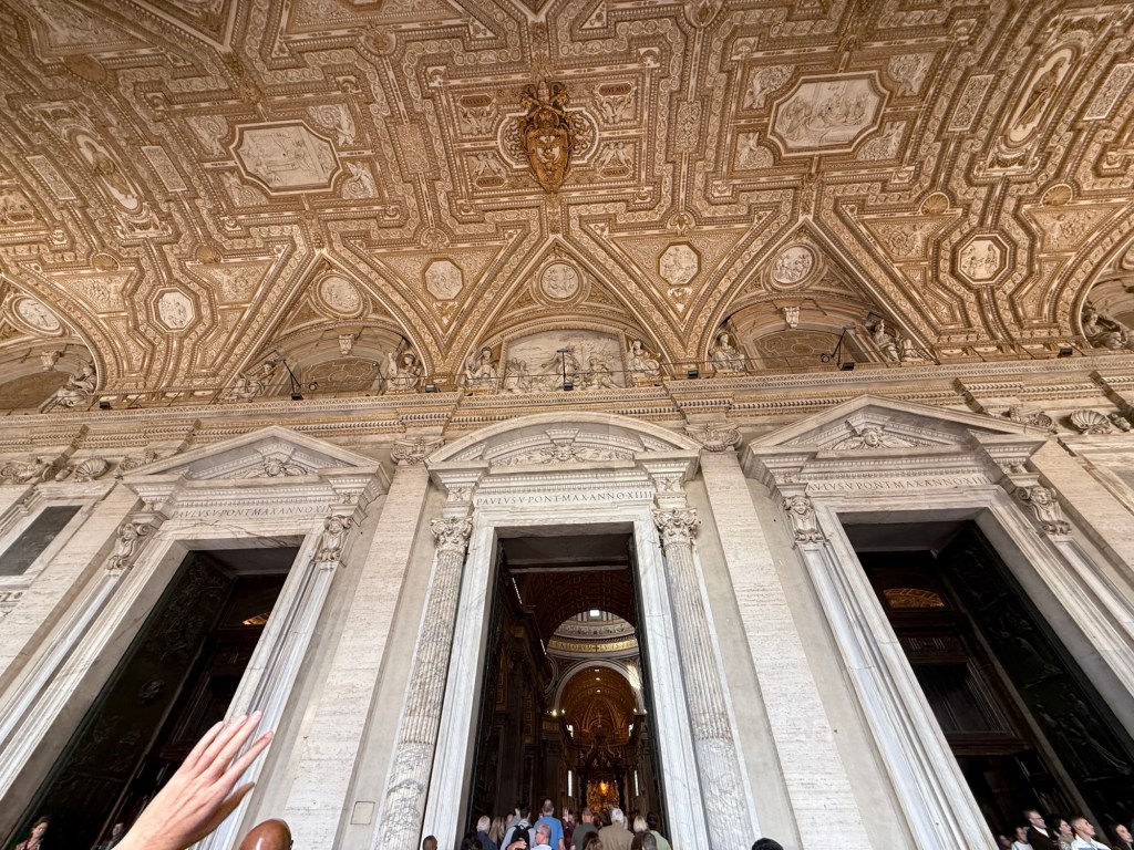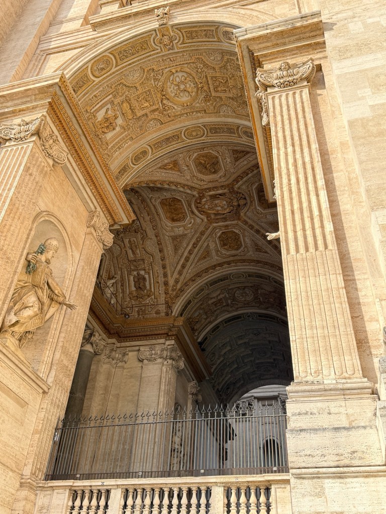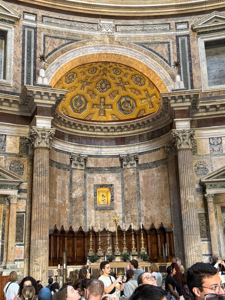 While waiting in line I spoke with some lovely ladies from England and then began listening to the Rick Steve’s presentation. A point that really stuck out to me was about the portico. Each column is 40’ tall, 15’ around and came from Egypt! As promised, the inside was spectacular