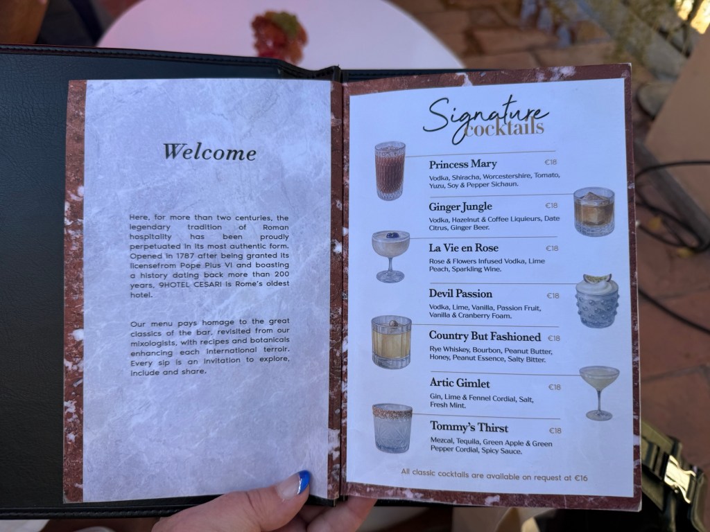 Next, we walk together towards Trevi fountain and found a small restaurant and had some food and blueberry mimosas before working our way up to the fountain that was very crowded