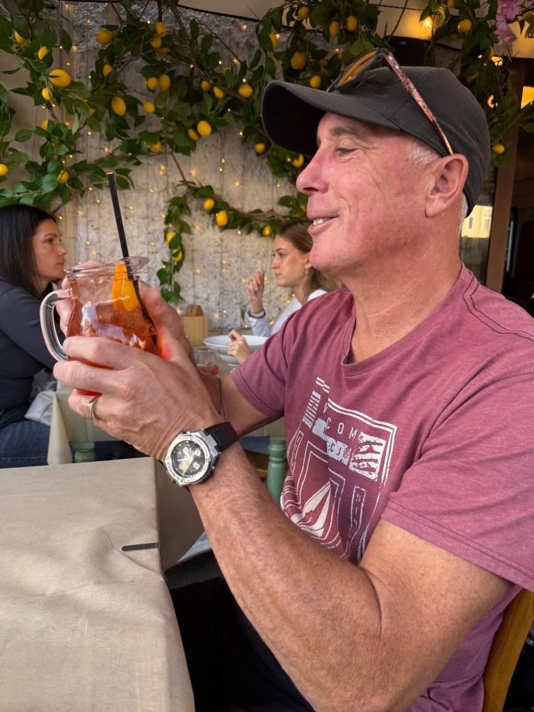 Never back to our home for 4 more nights, I was very happy with it and Dave assisted with getting my bags up. We went back to have beverages with Deb on the ‘patio’ across the street. Our stay really is in a glorious part of town.