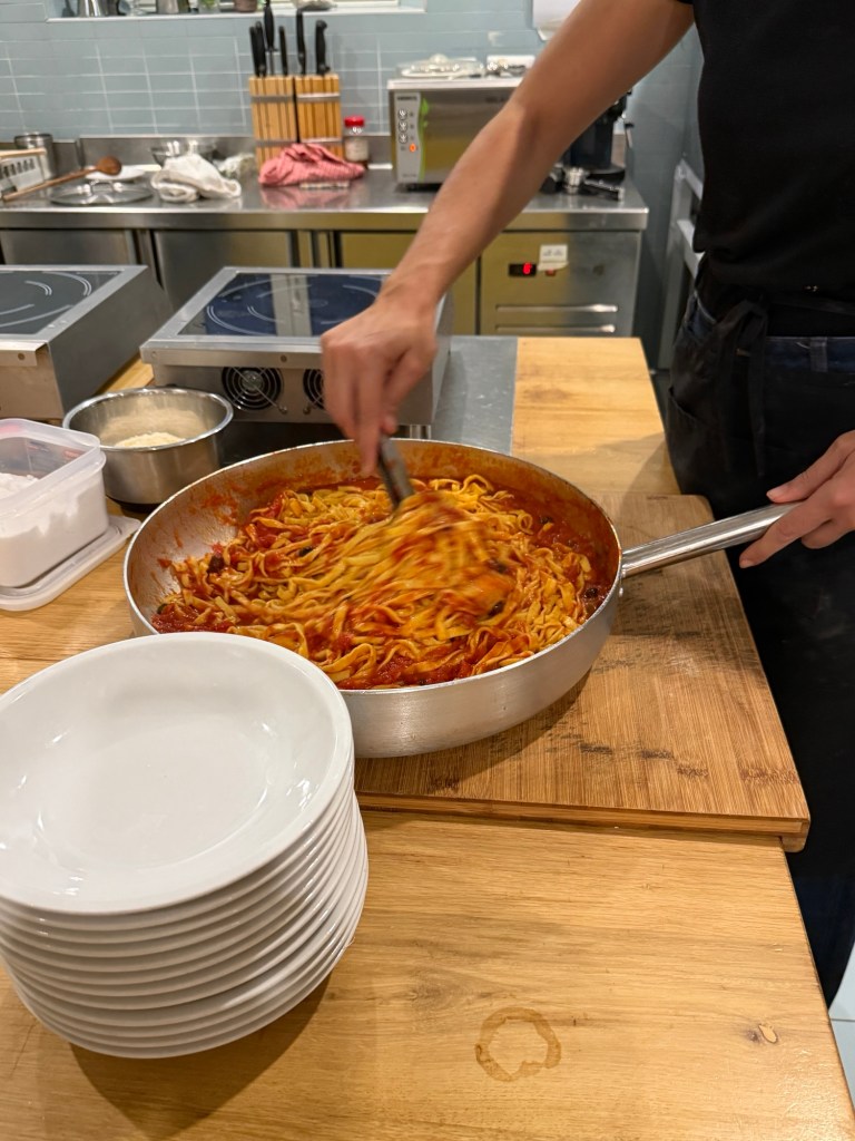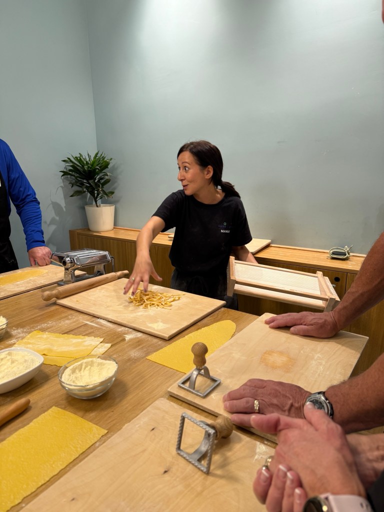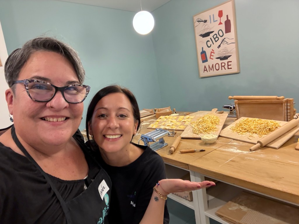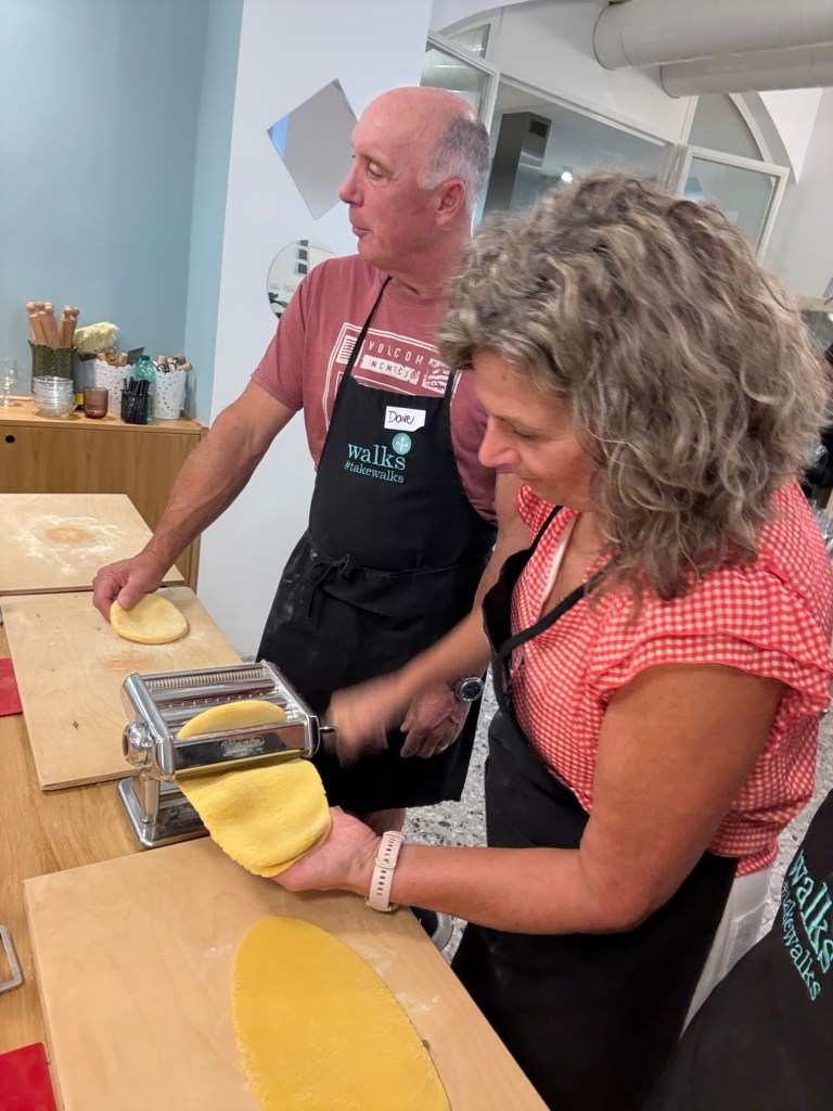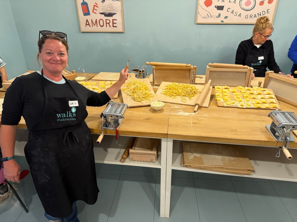 Now we were running out of time so Dave headed off to drop our stuff at the apartment and meet us at the cooking class meeting spot. What a fabulous time was had! We made fettuccine and ravioli and gelato