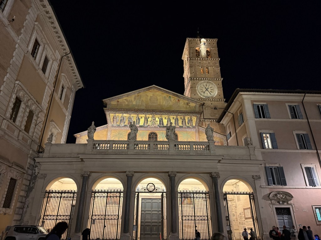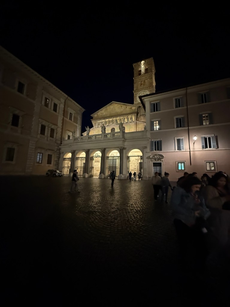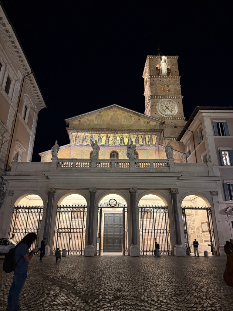 We wandered back towards home, took wrong turns, got separated etc. I love big crowded cities at night. Deb and I bought makeup. I have never had such a fancy mascara. Earlier in the day I had bought a fancy calendar of the sites of Rome and a gift for Rae . I even wandered into a mass!