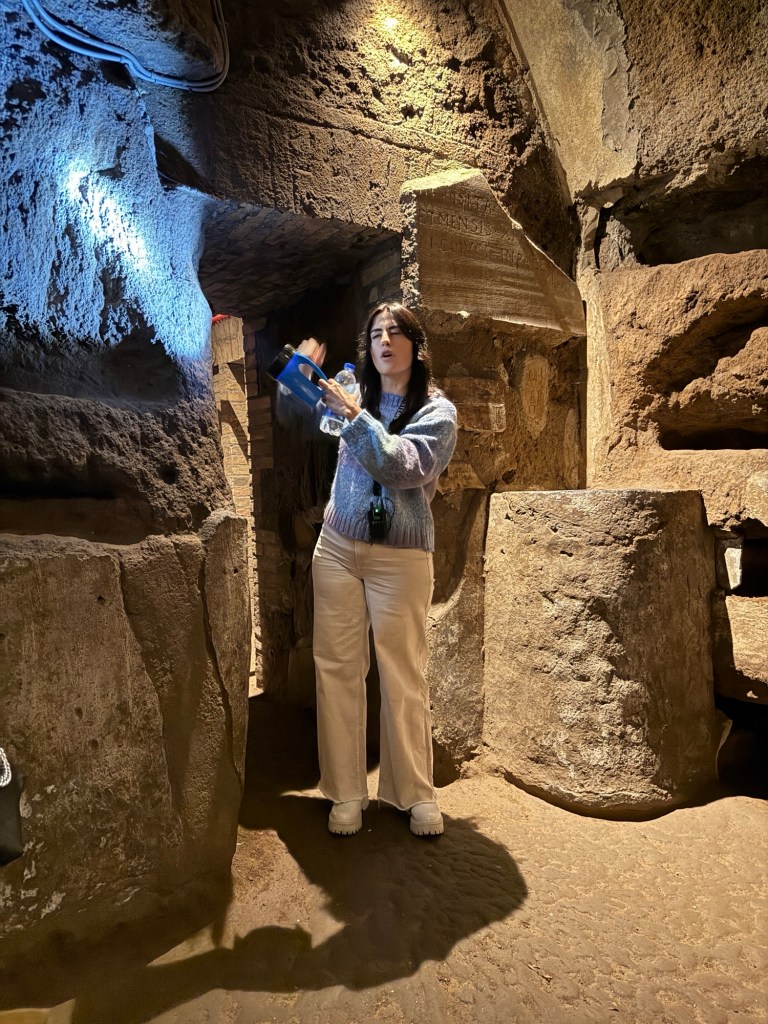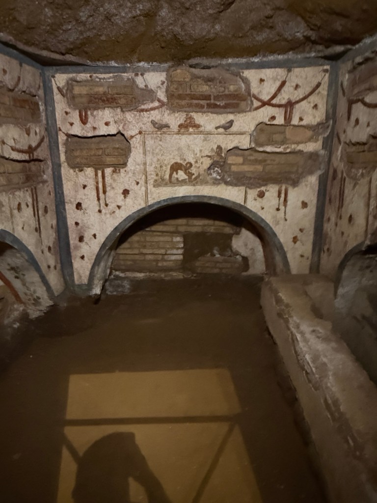 I caught up with ‘em and we went off to buy Feb a new hairdryer. next, I had to quickly catch a cab the Piramide Metro station for our tour. I met some nice people, including Nancy from Toronto, and we went to see first the aquaducts, and then the underground catacombs followed by the Appian Way.