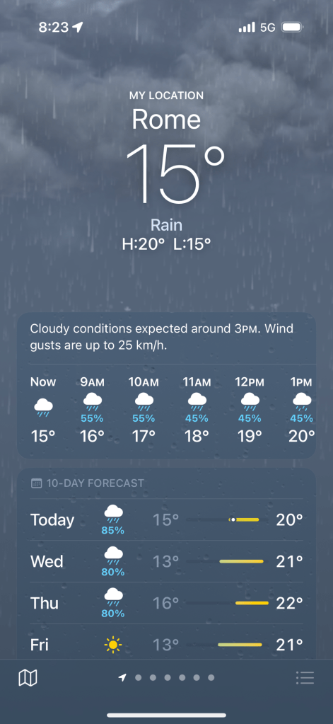 Once back in my room, I spent time unpacking and hanging my clothes and getting ready for tomorrow. I am very glad that I was able to find a new trip being that mine for the Amalfi Coast Sorrento in Pompeii was cancelled due to the lack of people I believe I will be happy with the one that I found, and it was a little bit cheaper and they refunded the other one in full.