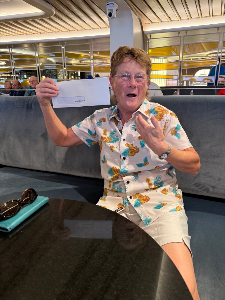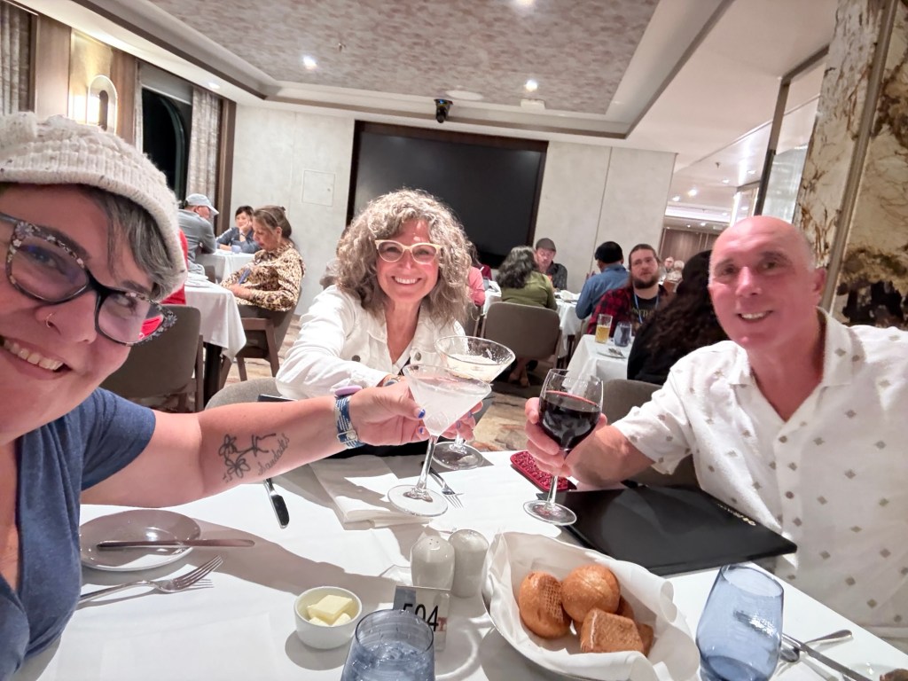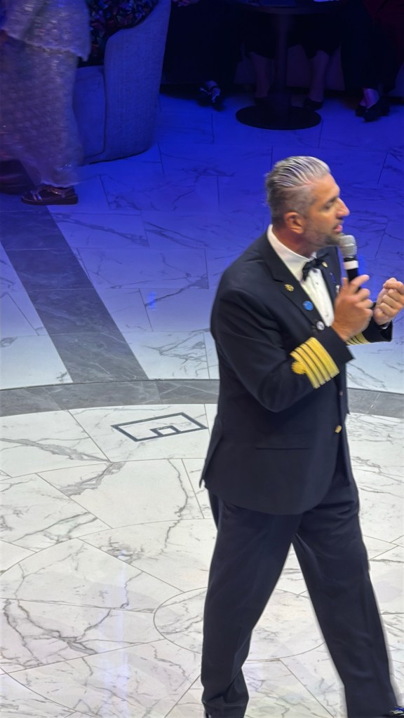 I was a little bit stressed out to go to the meet and greet that was organized on Facebook, but I had brought a gift so I knew that I needed to. At first, I felt very alone and then Glynn came up to me. Happy that I was there and I went over to talk to Kathy. We had a kind of great bonding time and agreed that we would like to hang out more over this voyage and that we should go to dinner together after the captains celebration.And