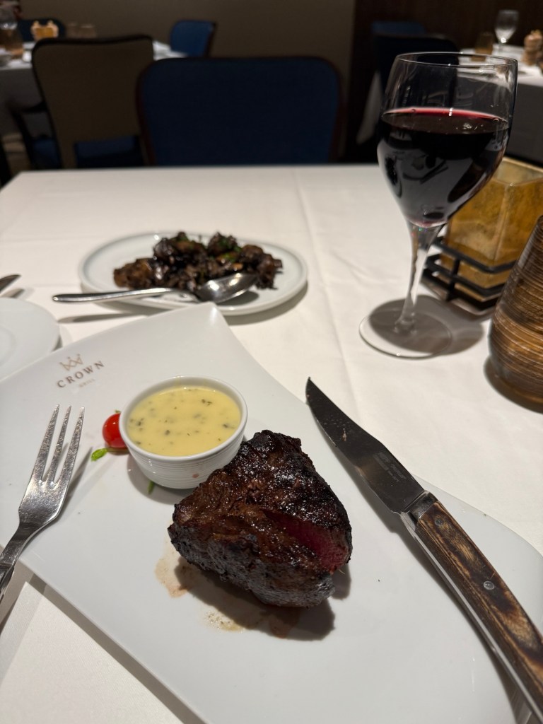 I got back on ship on time to book a special dinner at the Crown Grill. I am sitting beside this lovely couple from Texas? we had a good conversation and great encouragement to come back for a princess cruise.