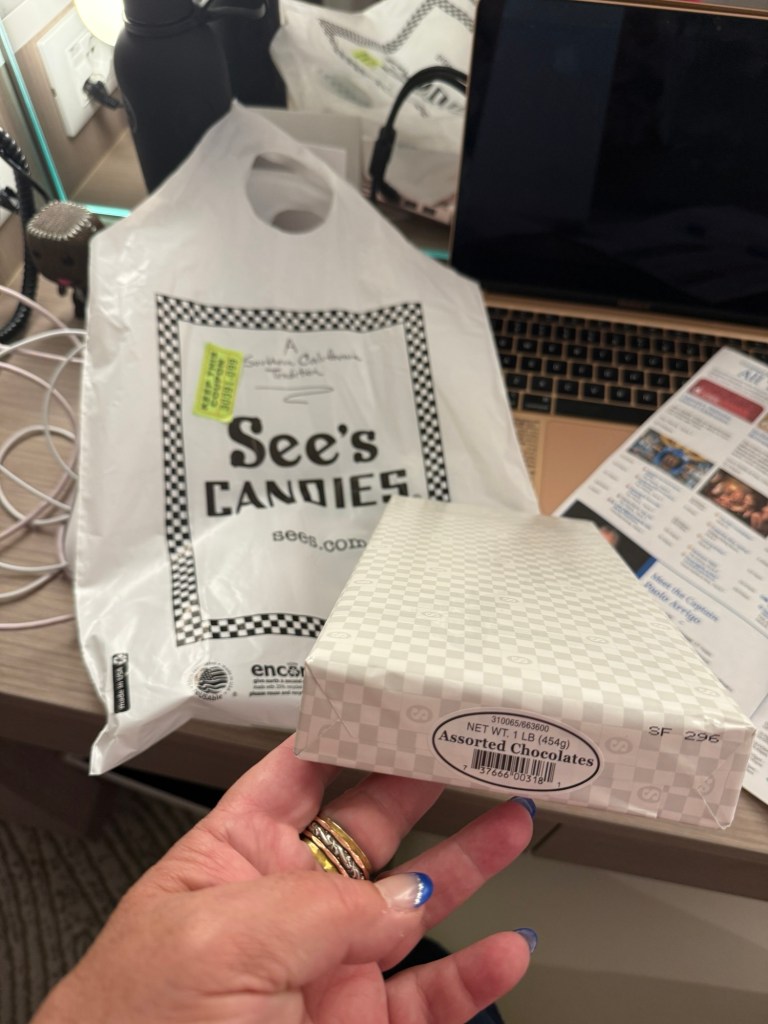 I was the lucky winner of the draw of See’s candies and more specifically, chocolate