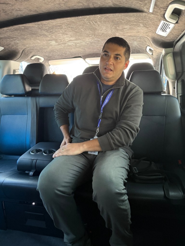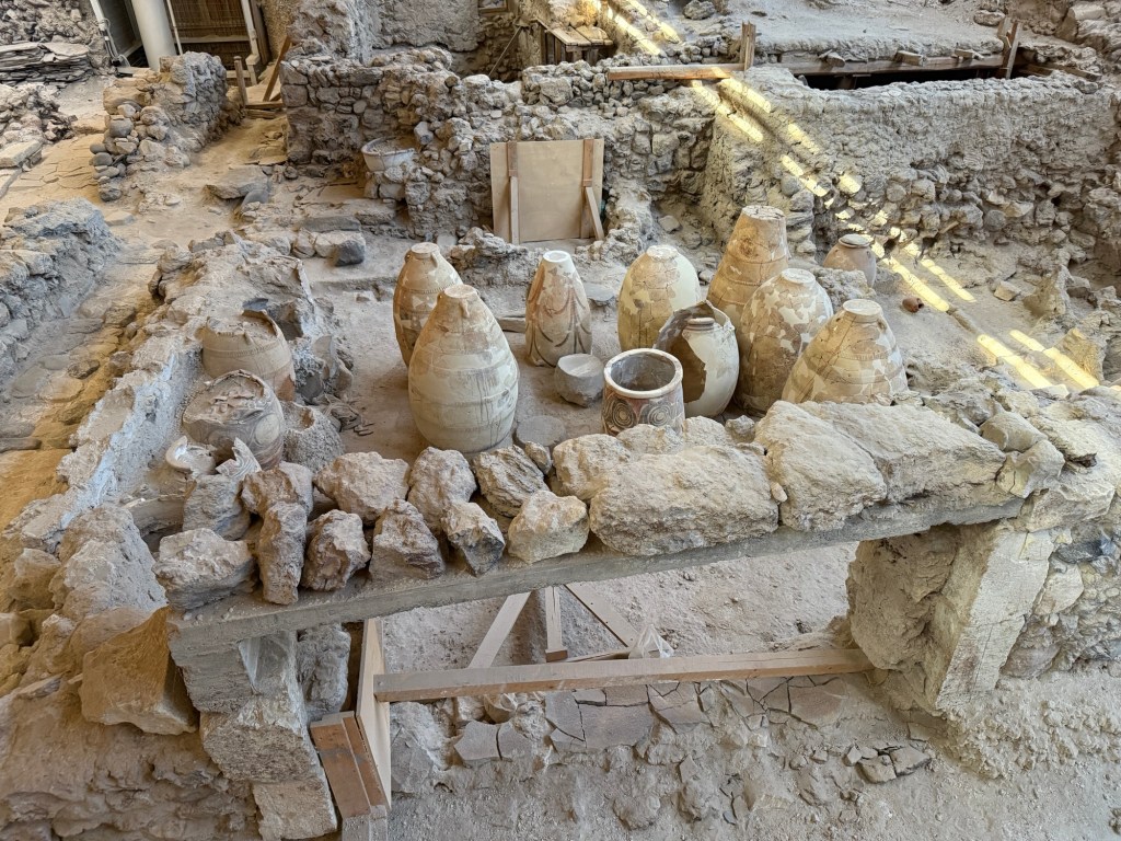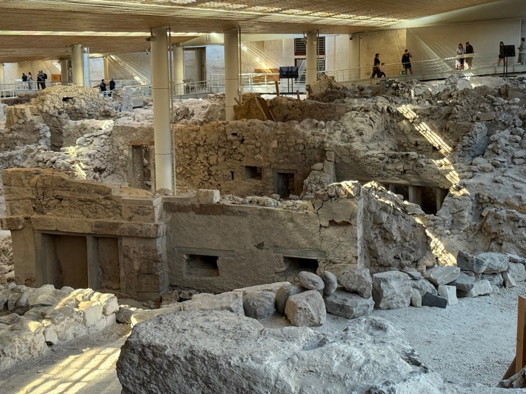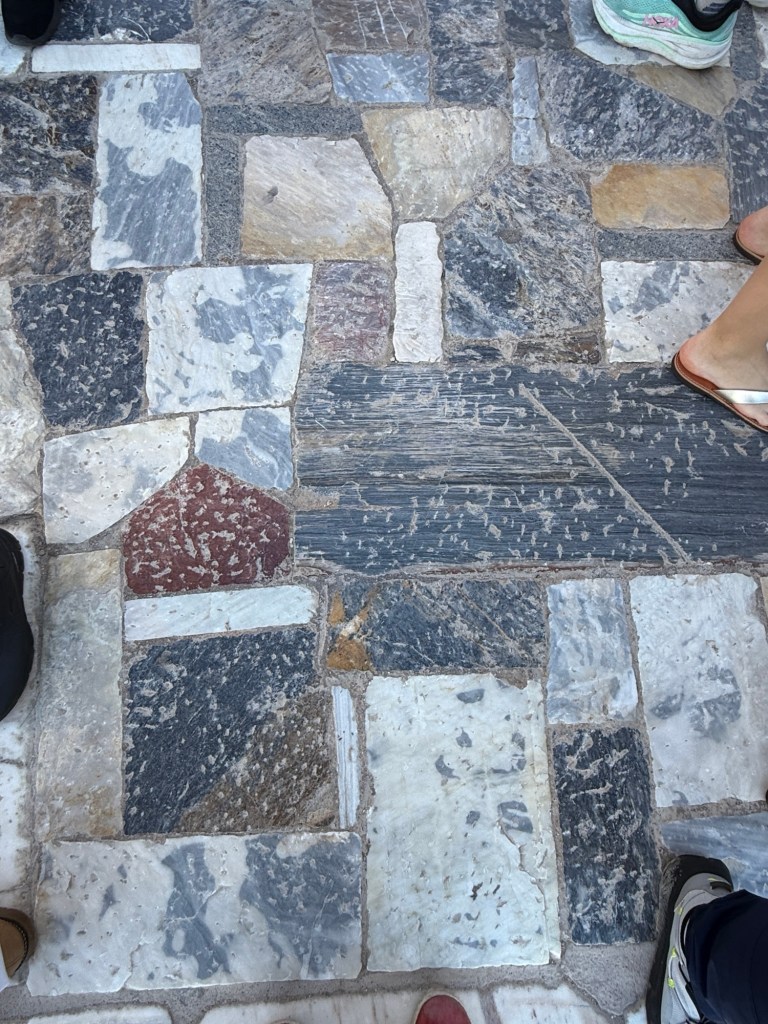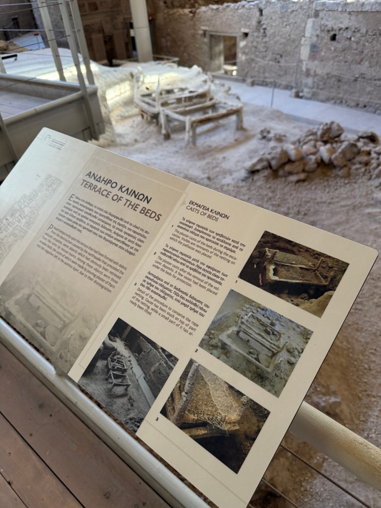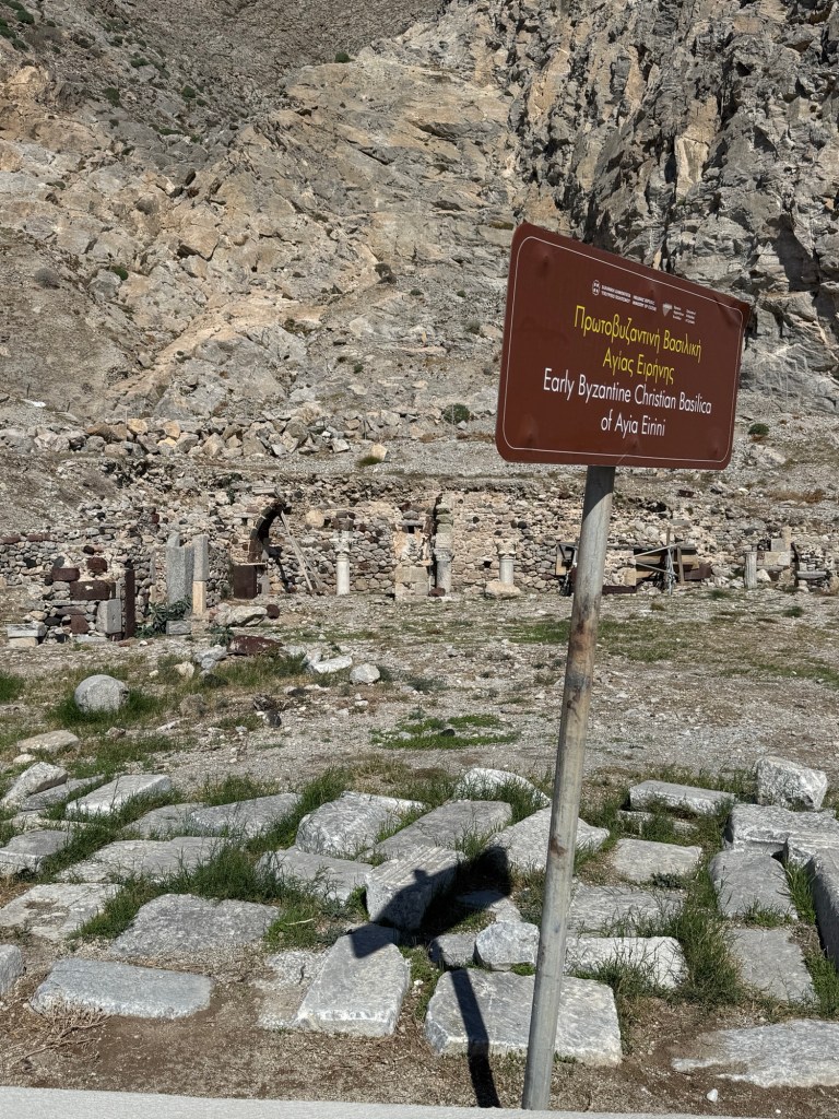 Mamma Mia when I start to my day, I read the paper and I 1000%. I’m sure that it said at 9 o’clock go down and get your tickets for the shuttle however when I went down there at 9 o’clock I was already given number 25 and they hadn’t even called one yet. Everything was running slightly behind. This was about to be Come a big issue for me with the outside tour that I have booked. I went and talked to Thomas who’s been in charge of a lot of the games that I’ve been playing on site and he did give me a nice princess wine stopper, but more importantly, he wrote on the back of my ticket, his name and cost of the two and got me to take a selfie with this and then sent me down to the pathway to get on the next available Tender. Once I got to the side, there was basically no lineup in grabbing the cable car to the top but when I got there is when things got complicated because nobody seemed to know where my pick up spot was, and there are no street names in East towns on this island. Don’t ask me what they do about the post. I was standing on the street where they knew that buses could be and that would be a good sign when I got the message from via tour that my group had left without me so my tour is booked for 1030 and according to the people that were on board, they left at 10:20. I was standing there flabbergasted and unsure what I should do. They said the next stop was the archeological site if I could join them there stunned I walked across the street to a gentleman standing with a Mercedes fancy van taxi and I paid $40 to take the 20 to 30 minute ride out to Akrotiri.