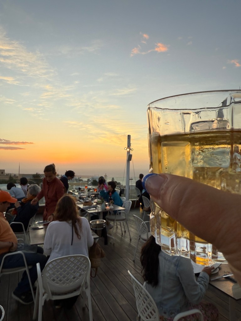 I strolled around and saw a rooftop bar. I went and sat up at the bar and was served Taliskar on ice by a beautiful Greek man. I watched the sunset although I admit that my pictures from earlier in the evening far away the ones I took then but the whole experience was beautiful.