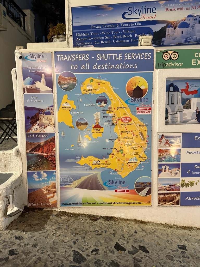 We had it towards Oia, bit the bus had what I think were transmission issues and we had to stop on the side of the road and wait for another bus to come and pick us up so that we wouldn’t miss the sunset