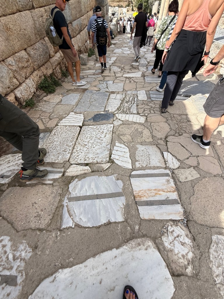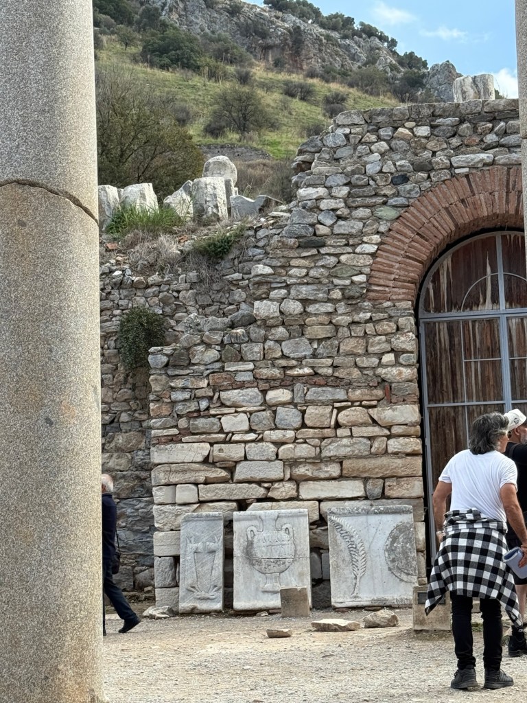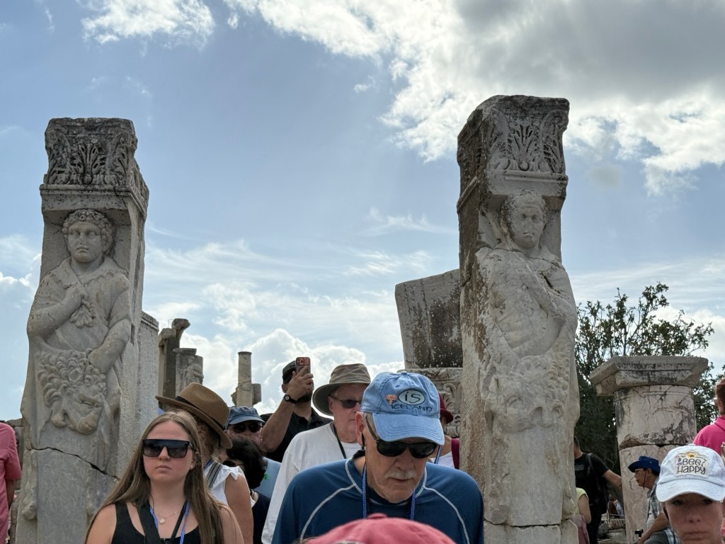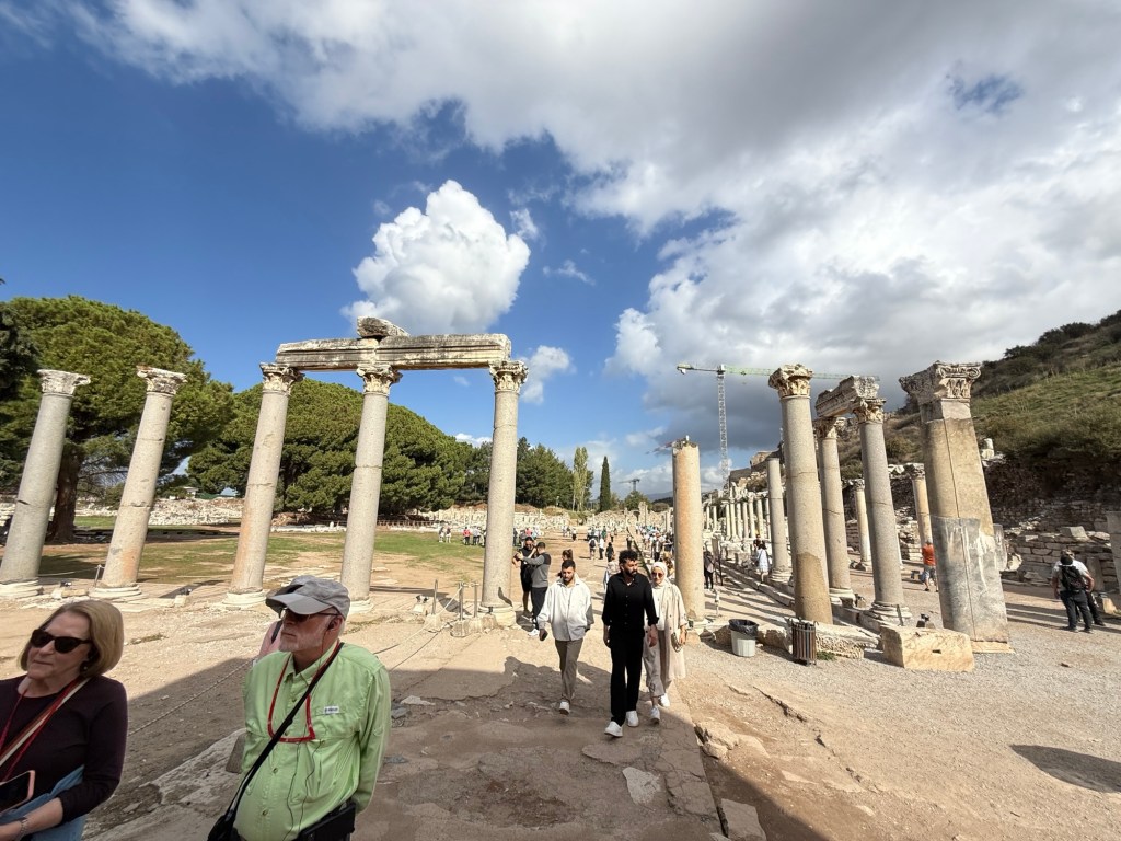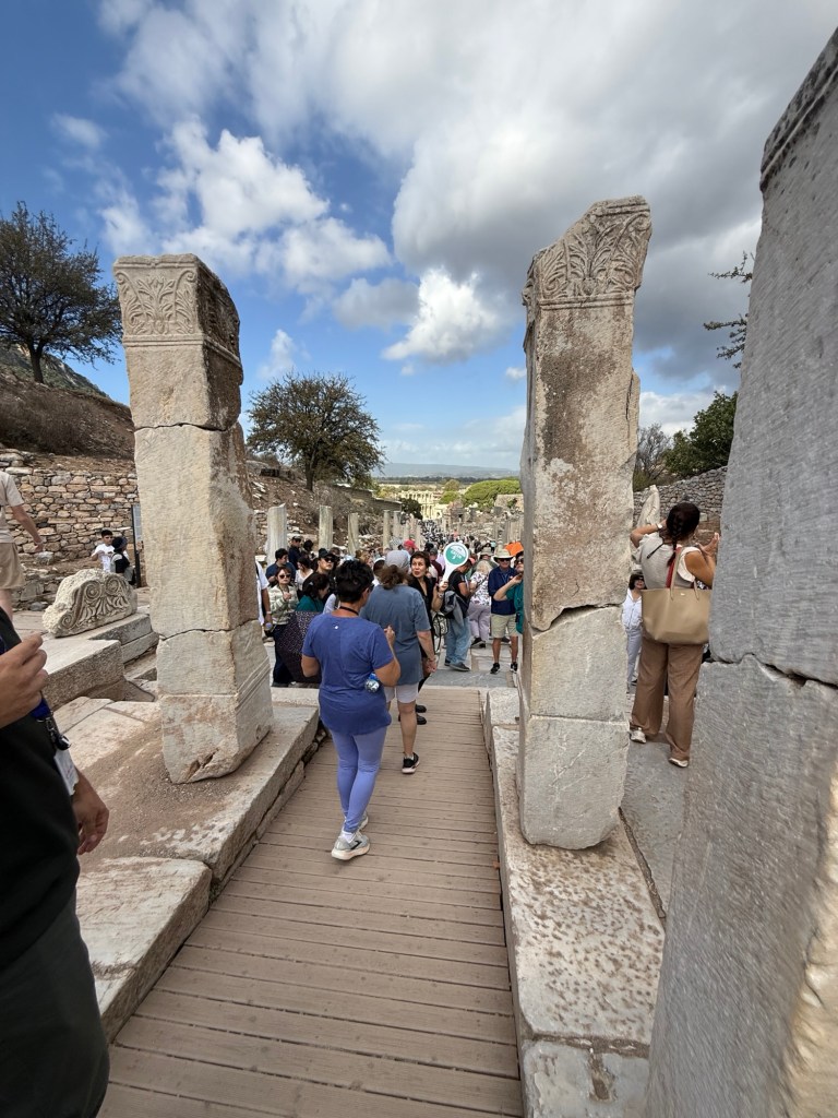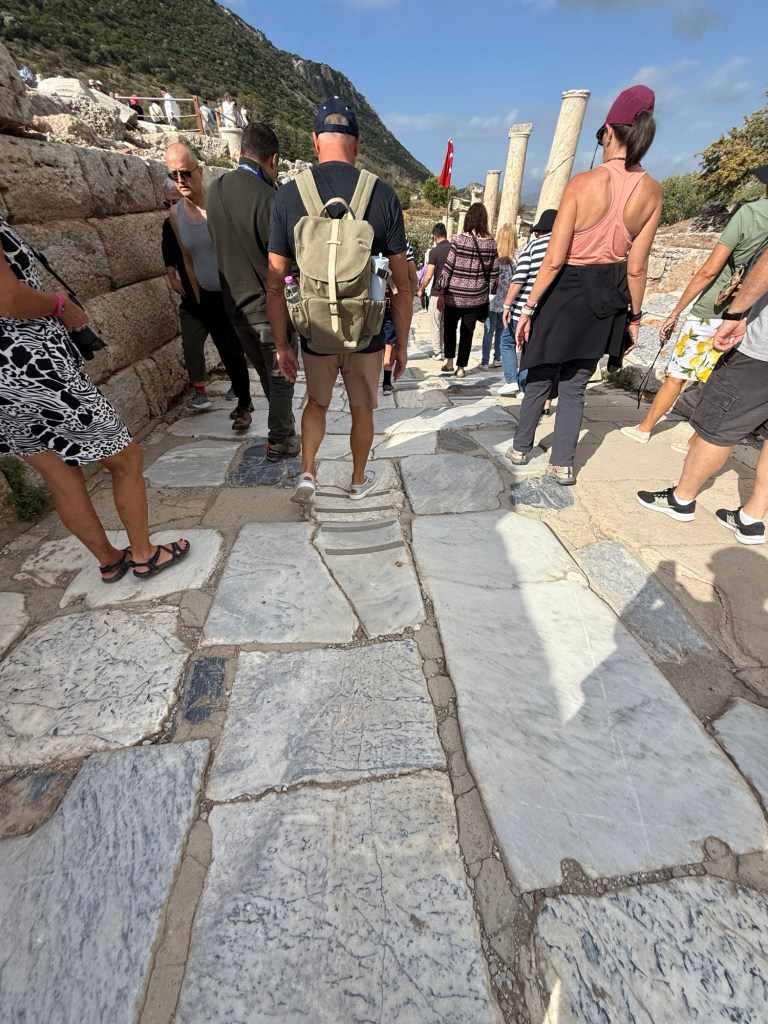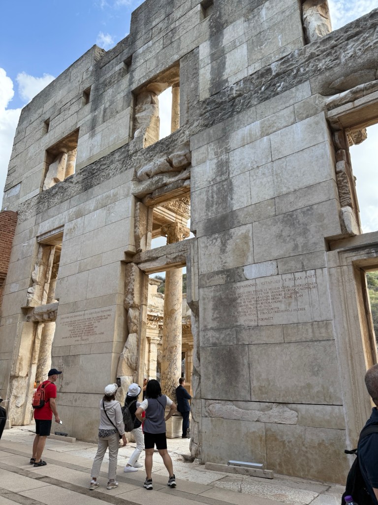 Our guide, Ilker, was fabulous,  we very much enjoyed his knowledge and passion for the area he lives. I am extremely tired and we have an early morning so I’m afraid this update is going to be shorter than even usual. The we learned a great deal about the incredible ruins of emphasis., I bought two pairs of shoes just outside those doors, we had an amazing lunch that I couldn’t eat most of it because of the peppers, but I ended up in return buying a Turkish handmade rug. Oh, and I also made that boy an emperor when I brought him his own little marbel powder ionic column.