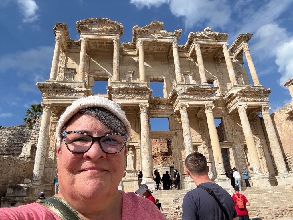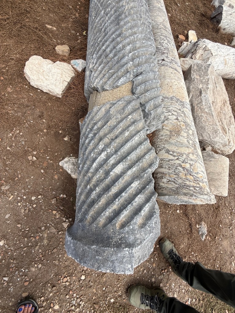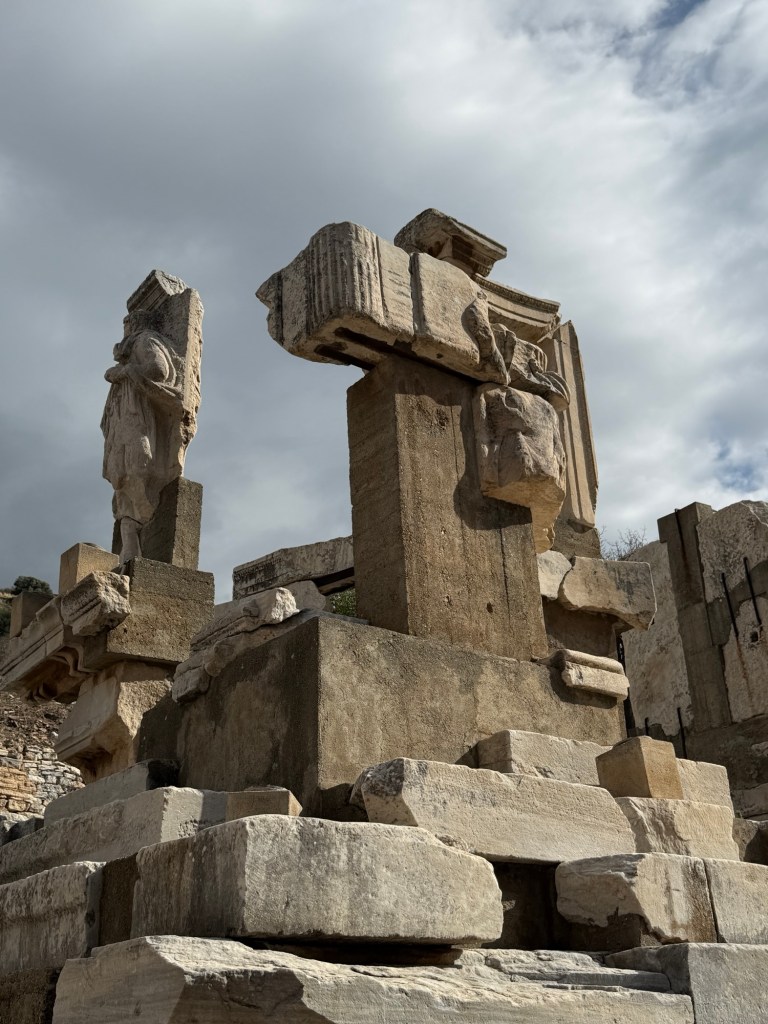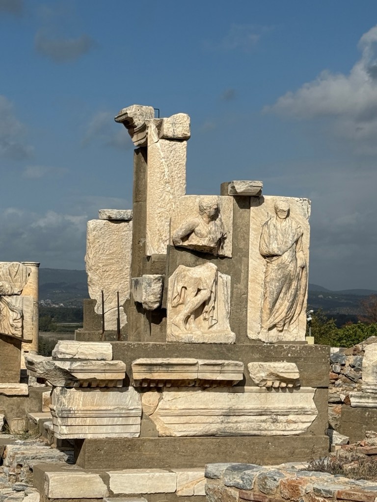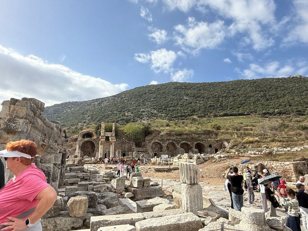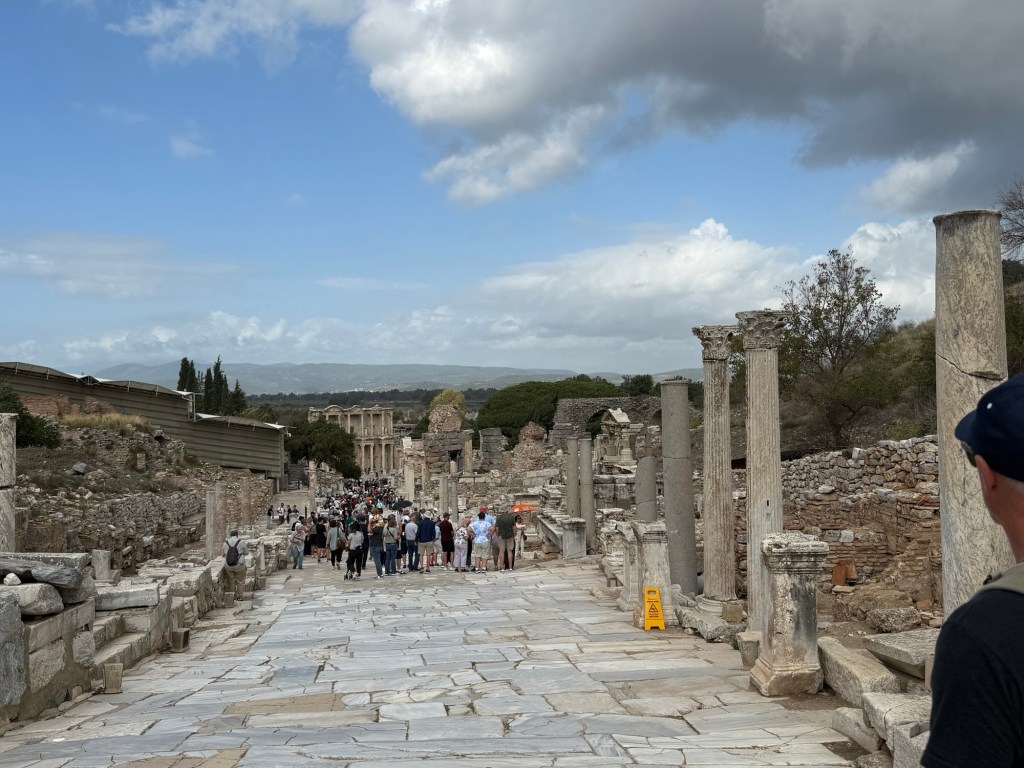 Our guide, Ilker, was fabulous,  we very much enjoyed his knowledge and passion for the area he lives. I am extremely tired and we have an early morning so I’m afraid this update is going to be shorter than even usual. The we learned a great deal about the incredible ruins of emphasis., I bought two pairs of shoes just outside those doors, we had an amazing lunch that I couldn’t eat most of it because of the peppers, but I ended up in return buying a Turkish handmade rug. Oh, and I also made that boy an emperor when I brought him his own little marbel powder ionic column.