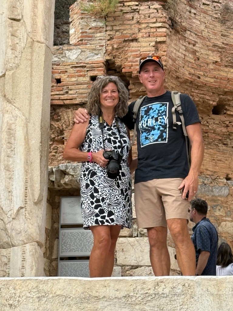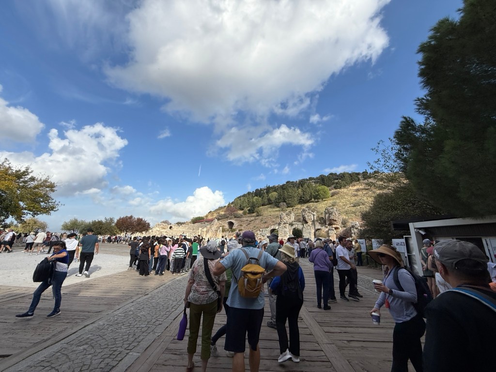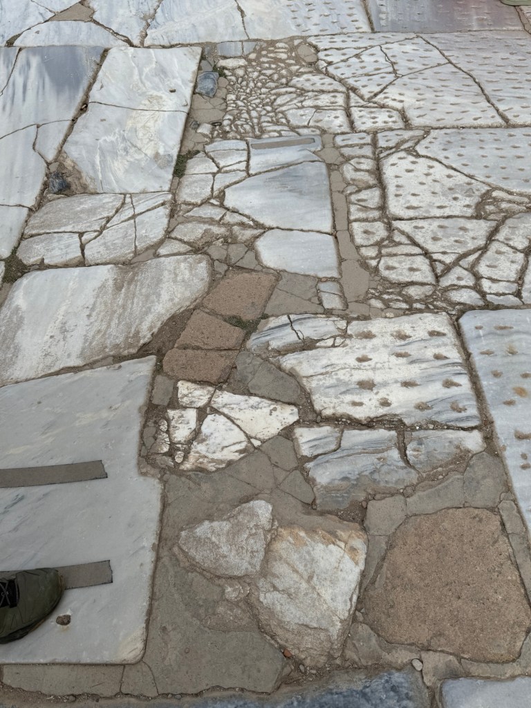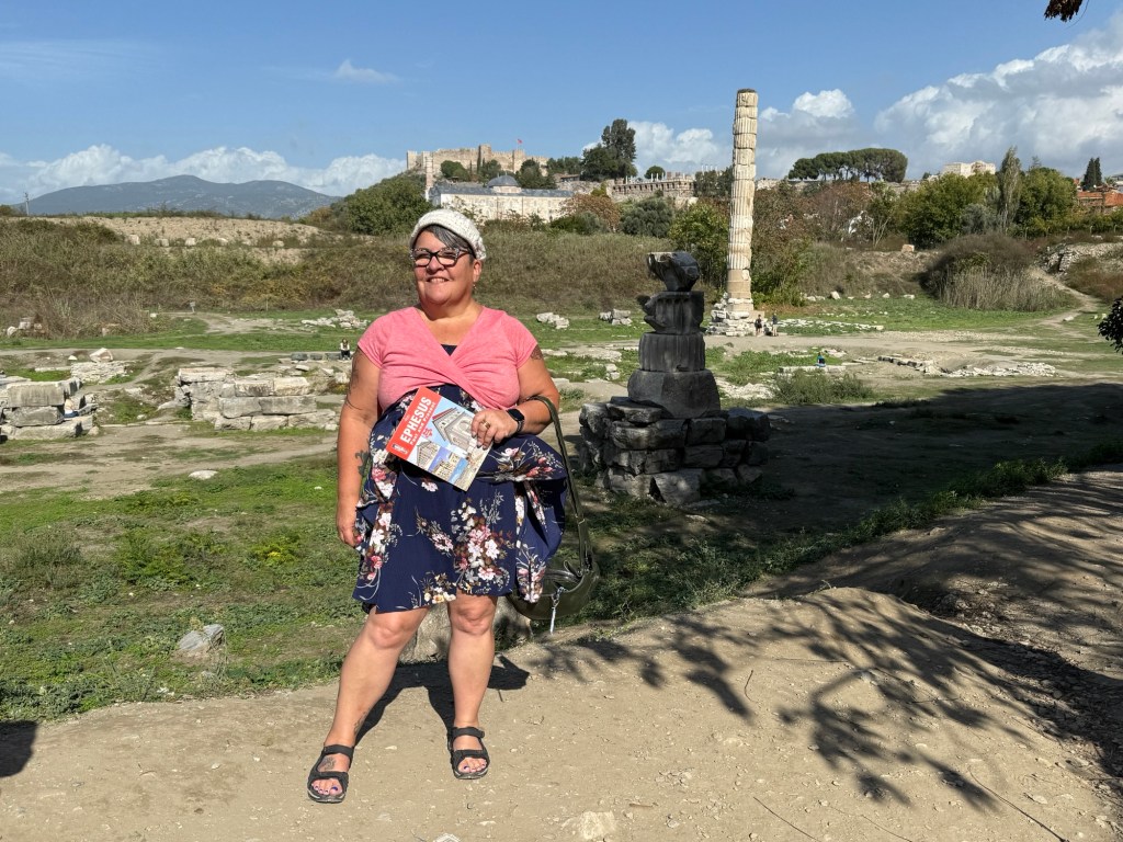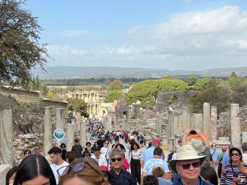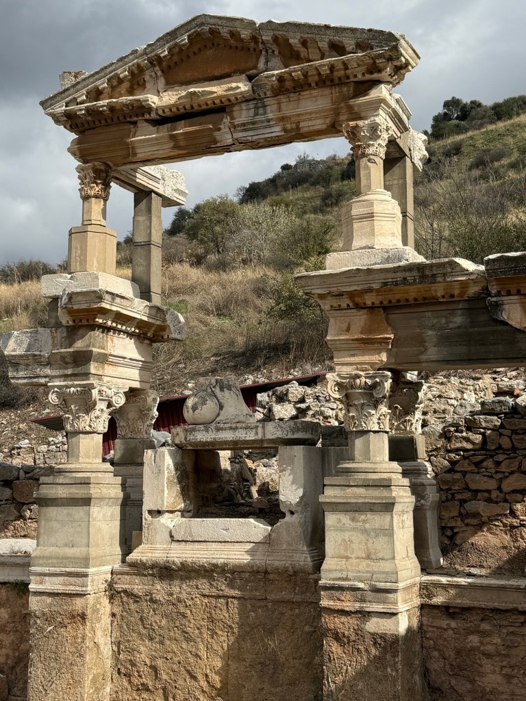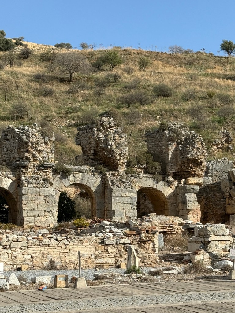 Our guide, Ilker, was fabulous,  we very much enjoyed his knowledge and passion for the area he lives. I am extremely tired and we have an early morning so I’m afraid this update is going to be shorter than even usual. The we learned a great deal about the incredible ruins of emphasis., I bought two pairs of shoes just outside those doors, we had an amazing lunch that I couldn’t eat most of it because of the peppers, but I ended up in return buying a Turkish handmade rug. Oh, and I also made that boy an emperor when I brought him his own little marbel powder ionic column.