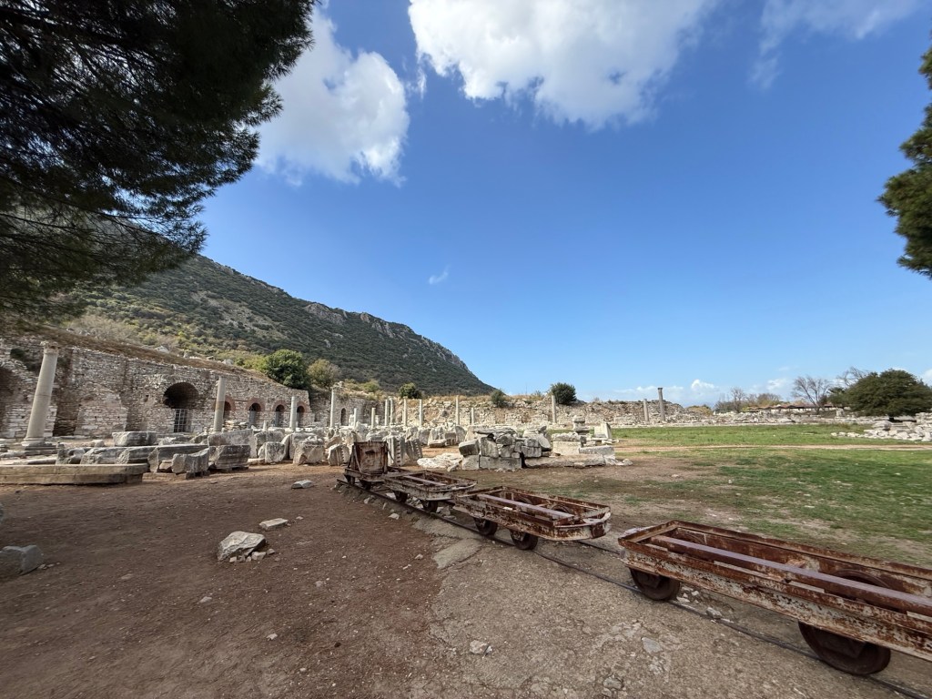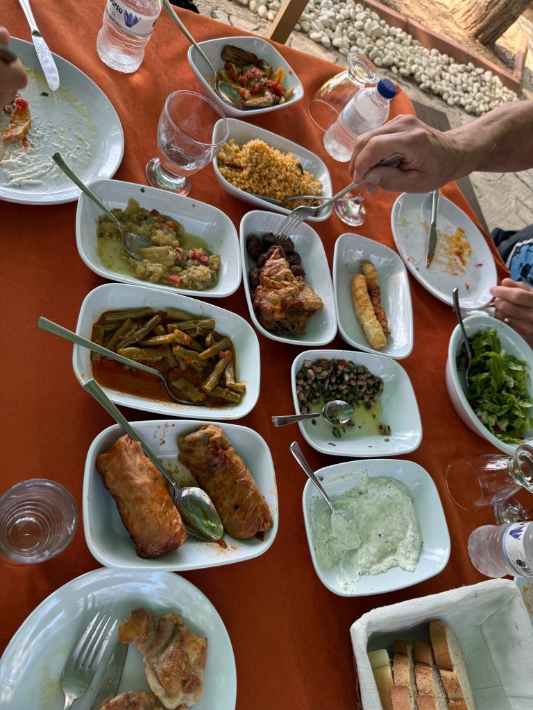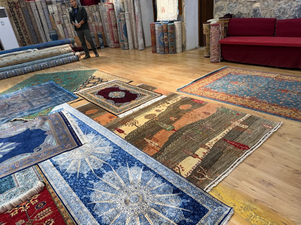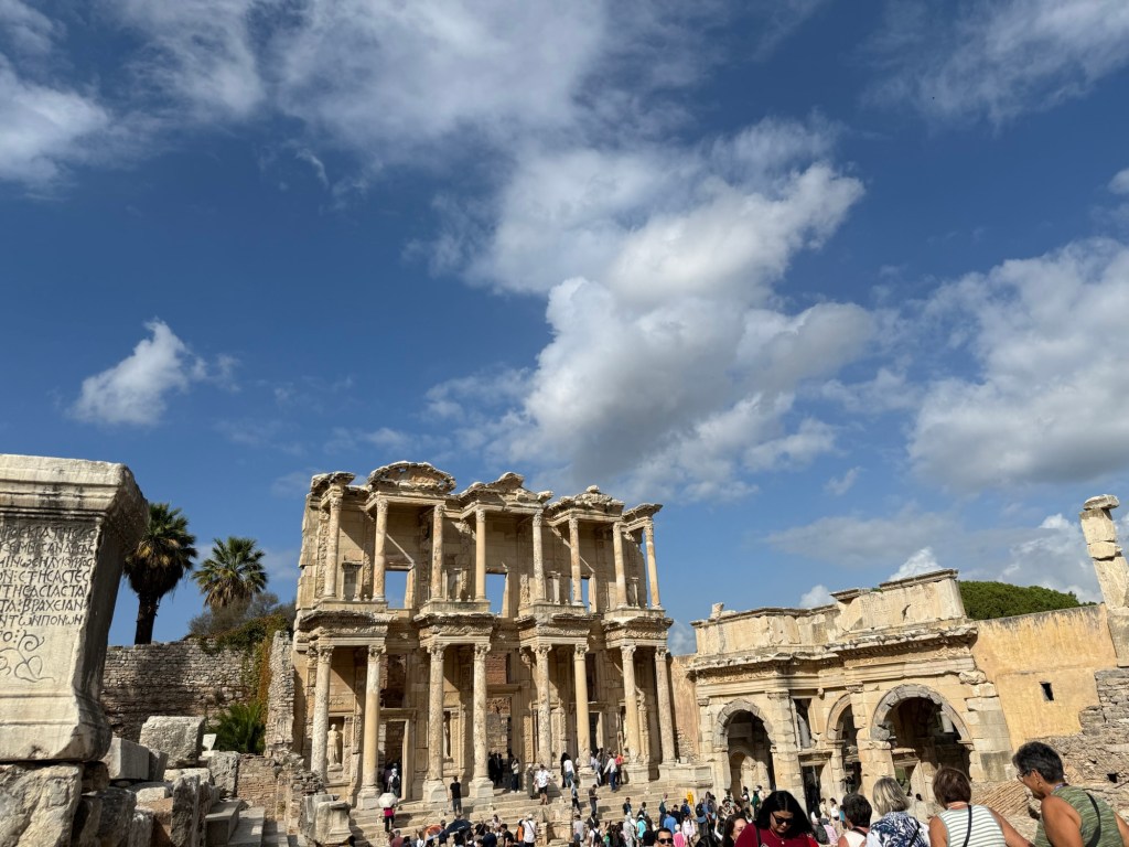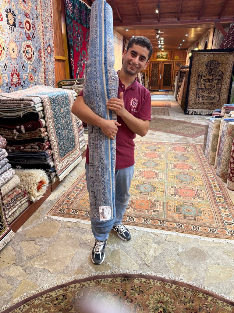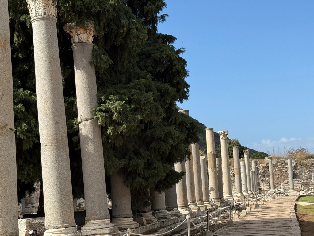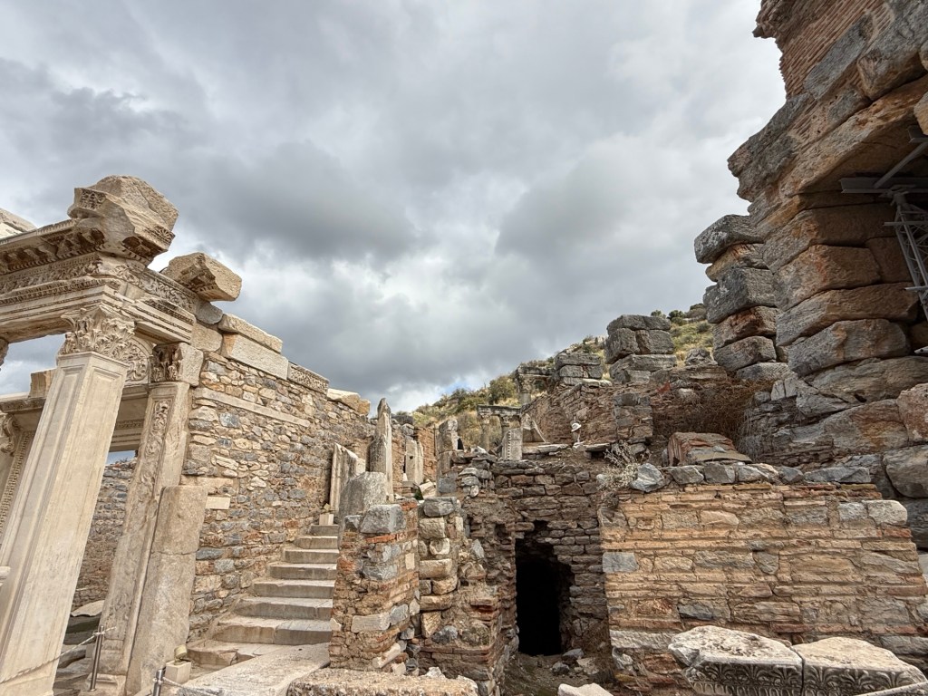 Our guide, Ilker, was fabulous,  we very much enjoyed his knowledge and passion for the area he lives. I am extremely tired and we have an early morning so I’m afraid this update is going to be shorter than even usual. The we learned a great deal about the incredible ruins of emphasis., I bought two pairs of shoes just outside those doors, we had an amazing lunch that I couldn’t eat most of it because of the peppers, but I ended up in return buying a Turkish handmade rug. Oh, and I also made that boy an emperor when I brought him his own little marbel powder ionic column.