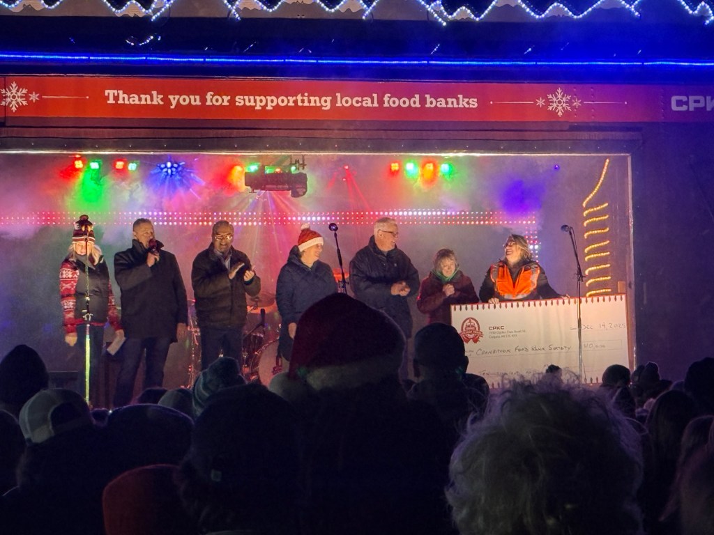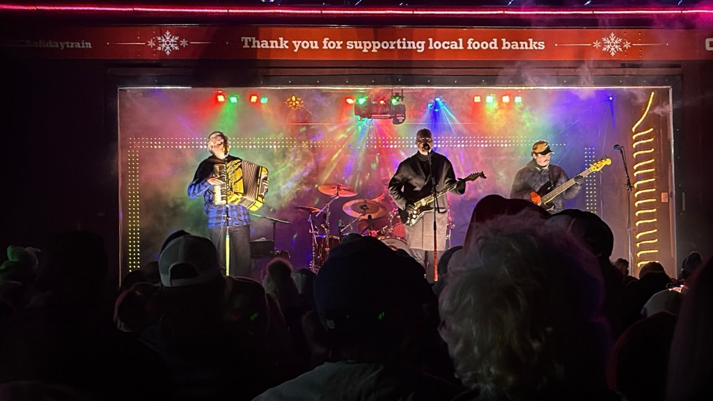 At 8:30 I went and parked at the office and walked over just in time for the CPKC Holiday to arrive. the evening was fun with performance by the Bare Naked Ladies. Jim Creeggan was unable to be there so Ed Robertson’s son played bass. He was good and they had everyone singing along.