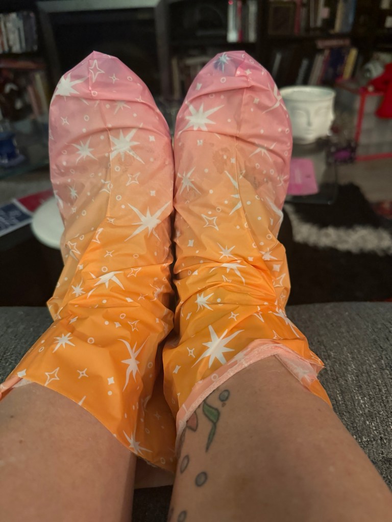 I came home and finally used the vanilla foot masks that Rae gave me in Florida