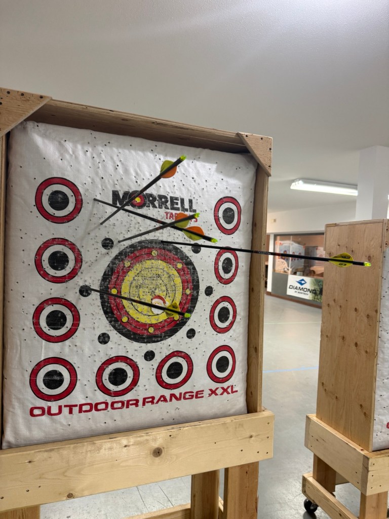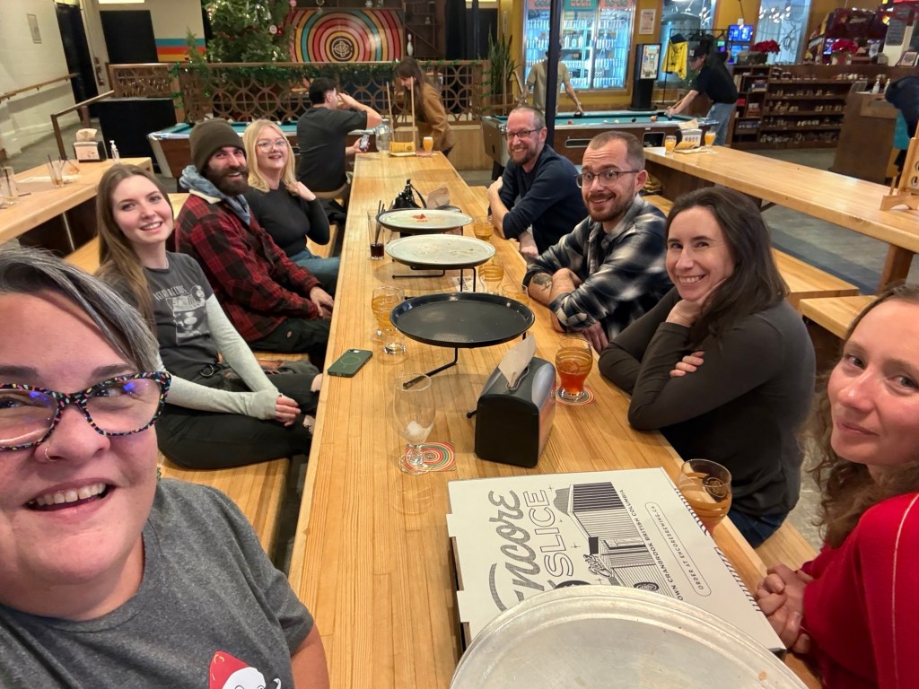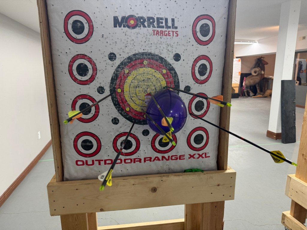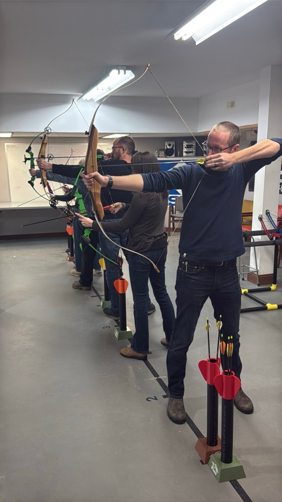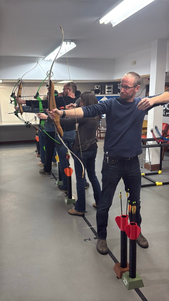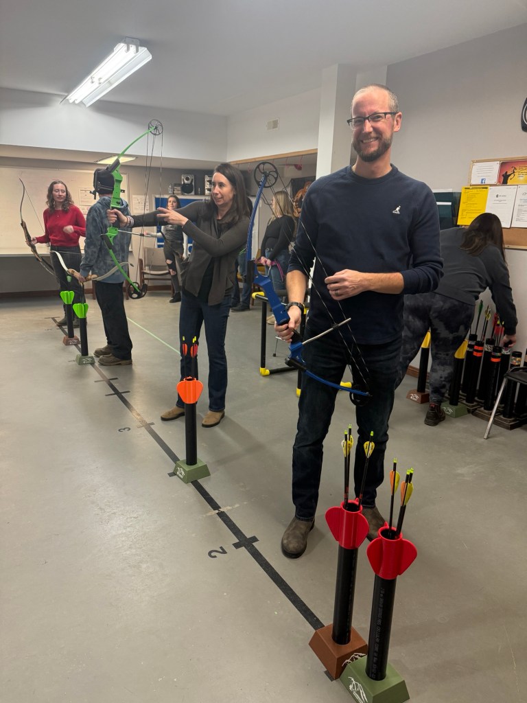 After work I headed to meet up with the Core Heritage Consulting perps for a Christmas party. Brett had invited me to join them with an event Jill had planned. I had no idea there was an archery place in Cranbrook underneath the Chamber of Commerce. We had a lot of fun for an hour and a half and then headed to Encore for pizza and drinks and good visit. It was a fun night all around