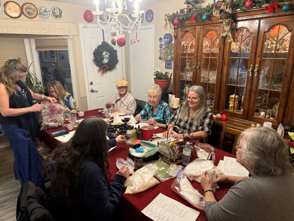After my massage, I picked up mom’s prescriptions and drop them off to her at her apartment before heading to Verna’s to make lip balm. I wanted to take some to the people at the hospital who once again have helped out. It turned out to be an incredible group of ladies who I enjoy, and we had a good visit.