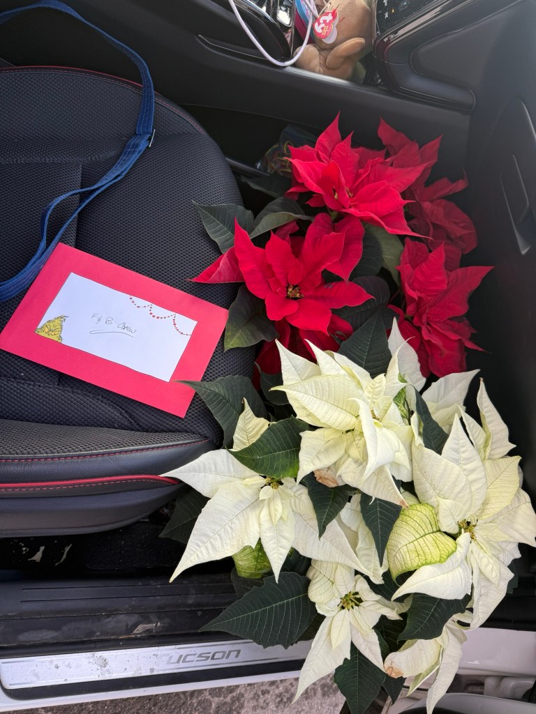 I started the beautiful day by dropping off a card and two poinsettias to Mike at Fenwick & Baker. Next was a quick stop to see if Lukas was around for a birthday hug but he wasn’t. I did let him know that his present was arriving on Monday