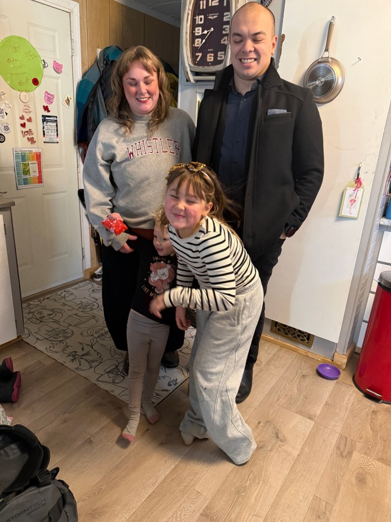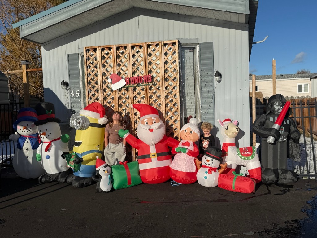 I headed off to superstore and used the gift card that I was given by a client to buy the rest of the groceries that I needed for Christmas breakfast and some Lego sets for myself as well as some 50% off Christmas lights and an inflatable Christmas tree. It was all covered by the gift card and was a lovely treat. I dropped the groceries off at home and then met the rest of the family at Santa, who had a good chuckle that I was there for the second time that day. Following the pictures, I was invited to join them all for the Crozier/Guedes Christmas dinner. I went back to superstore and I had exactly enough left on the card to cover buying a big Caesar salad to bring. Dinner was wonderful and I had stopped at home to pick up the Baja Rosa and black Sambuca to create volcano shots to share and they were a big hit.