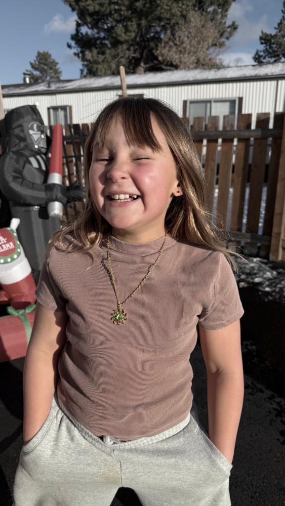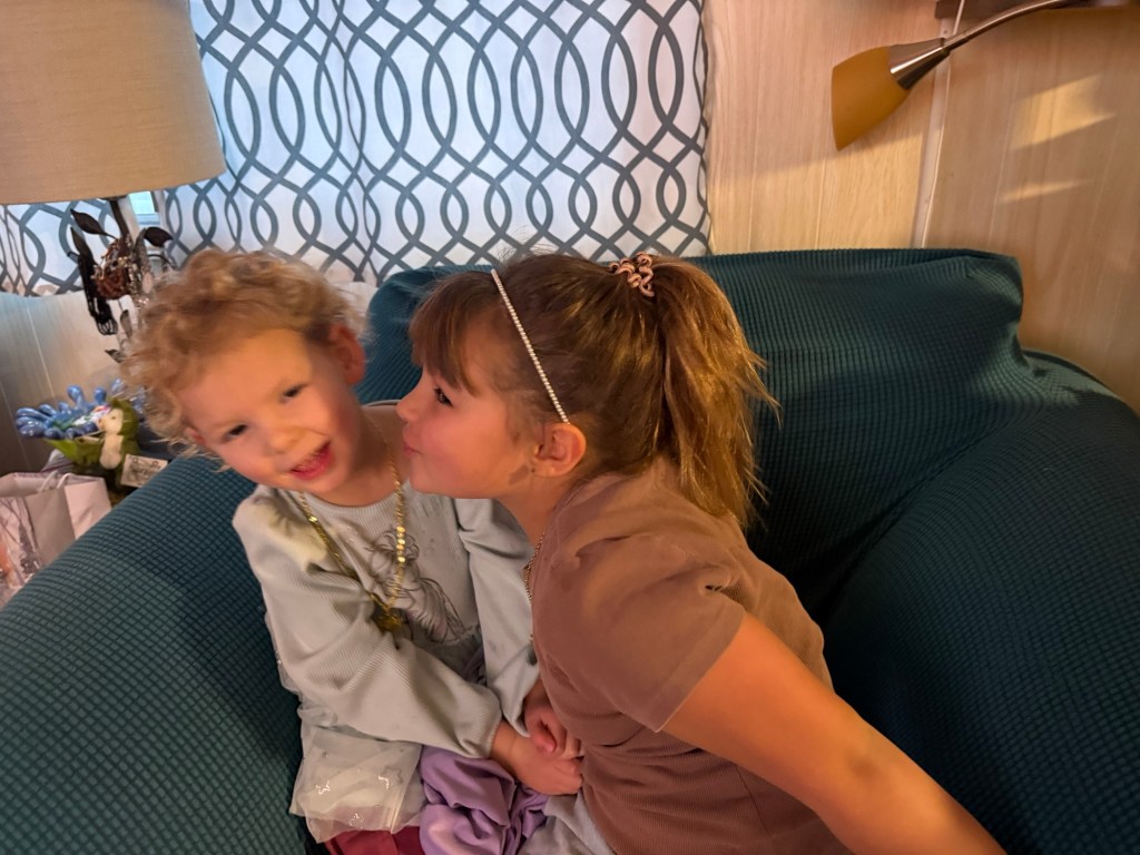 Danika and Malcolm dropped off Miss Emelia and Miss Gwendolyn. This will be the first sleepover for Gwen at my place. Emmy loved the necklace I got her on the ship. I think Gwen didn’t love the feel of hers around her neck