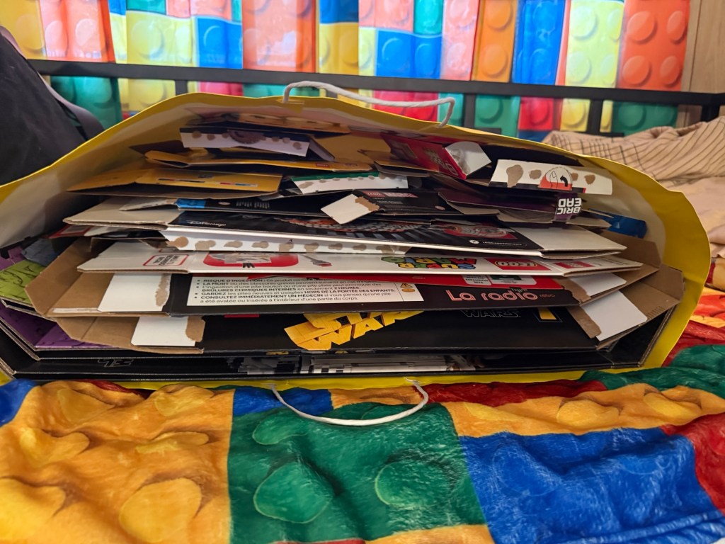 Sawyer help me bring all of his Lego to my place so that I could sort it and send back to him to Toews for building cars and buildings and hopefully I will have found a bunch of sets and completed them as that will be the tricky part