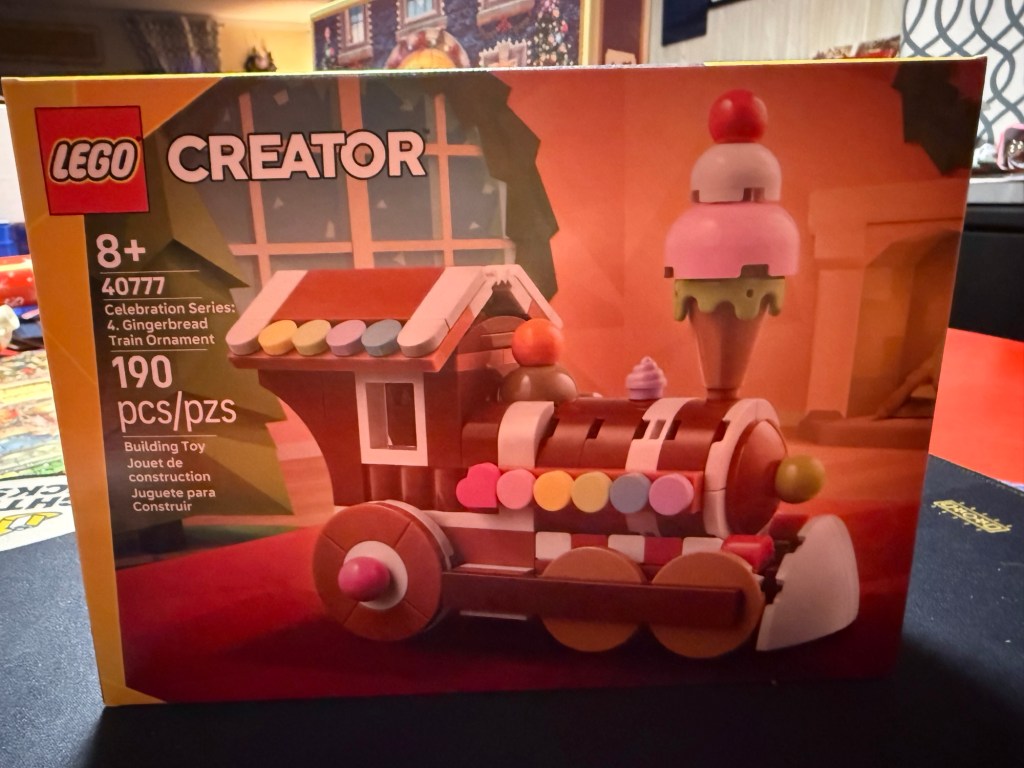 I sat and worked on a puzzle in the kitchen. I had a small visit before coming home. I’m just a little worn out, but I did take the time to put together my gift with purchase, which is a beautiful gingerbread train.