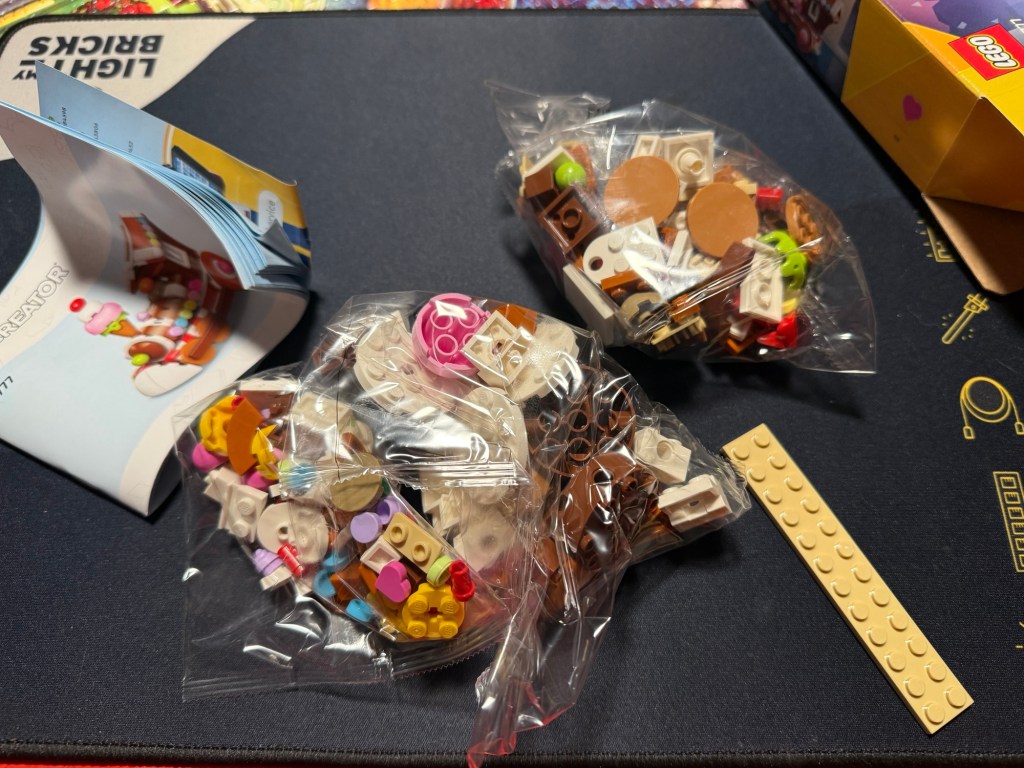 I had an ok sleep last night in the cube bedroom that Gene built the mattress is extremely firm so I did wake up a few times with a need to roll over. Once I was up I enjoyed working on the puzzle with Rae-Anne and thenDeanne who showed up a bit later. Sawyer and I made a plan to go see the SpongeBob show at the movie theatre. We loaded up their totes of Lego pieces for me to sort through and try to build any projects that were in there and return all the General building and car building bits in an organized fashion.