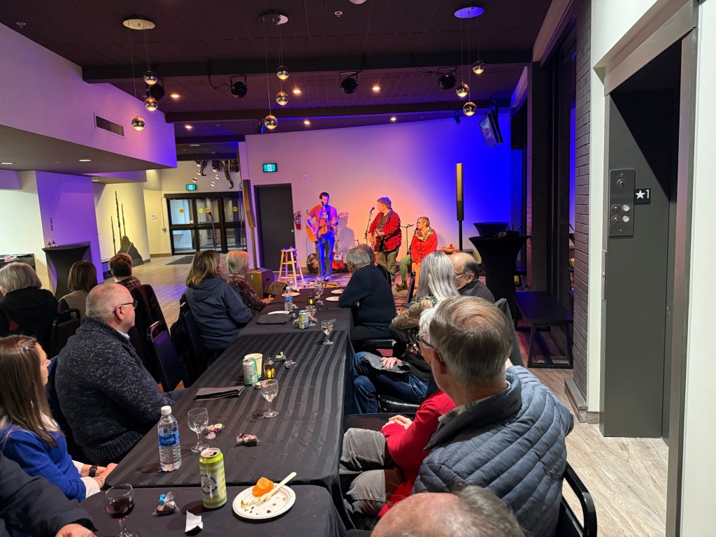 I was grateful that Rae-Anne took my Mom for her bloodwork today. It allowed me to get further ahead. I left earlier than I’d have like in order to get to the Key City Theatre volunteer winter dinner. I did have a nice time visiting with Daryl and Marianne, and Tony. Ali Joe Crow played after the potluck dinner and then we all waddled home.