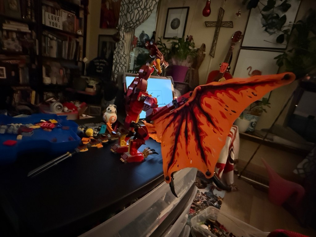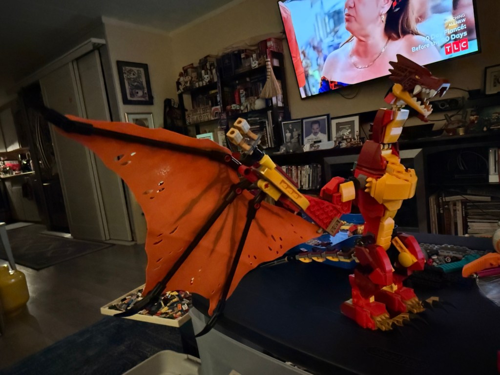 Once home I did some chores and then watched High Potential and continued to build a dragon. I can’t find all the pieces yet but it’s quite cool
