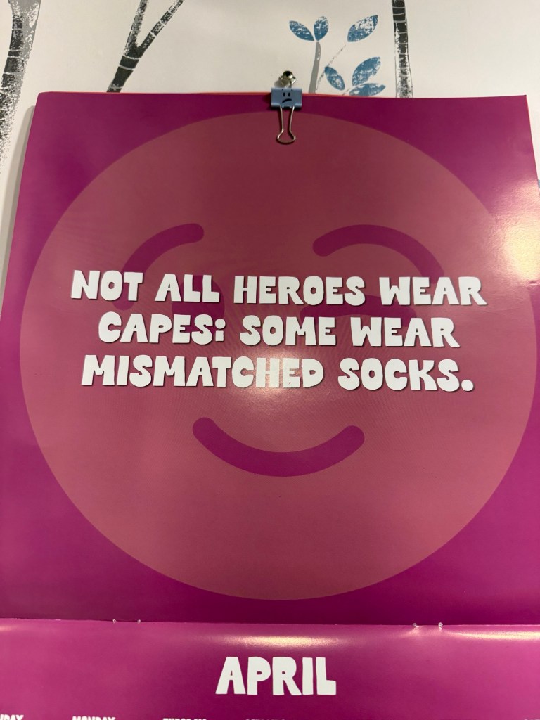 My first fun was when I grabbed a pair of socks out of my drawer and it matched my calendar, so I went with it