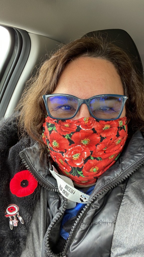 1 hour and 50 minutes can change a life, chart a different course, save a soul. That is the length of one phone call tonight. I had had a good day, much was accomplished. Awake before my alarm, I got ready to head down to the cenotaph for the Remembrance Day ceremony. I parked at work and walked over just in time for Oh Canada. I stopped as soon as I heard it, singing softly to myself as people passed me and looked back to see why I stopped walking. I watched as each realized, stopped, removed hats and respected. One of my favourite things is watching all the people converging from all directions. I moved closer, watching for family in the usual places. I had been standing watching for a bit when I recognized Deanne’s amazing long grey hair and her bright red and orange jacket. I moved up beside them to find myself standing beside Kimberly, my tattoo artist and friend who played my daughter in a show. It was so lovely to see her again. We also saw Emmy with her Mom and Grandparents. There was a super awkward moment when Jamie mentioned that his wife’s hair was just like mine.. she and I looked at each other, struggling for words so I just commented on the Covid grow out and let it go. He is so… uncomfortable some times.