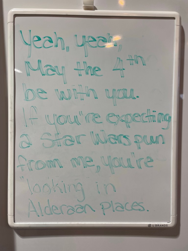 I cleaned up and readied for not being here for a few days. Probably should go pack… and get sleep.