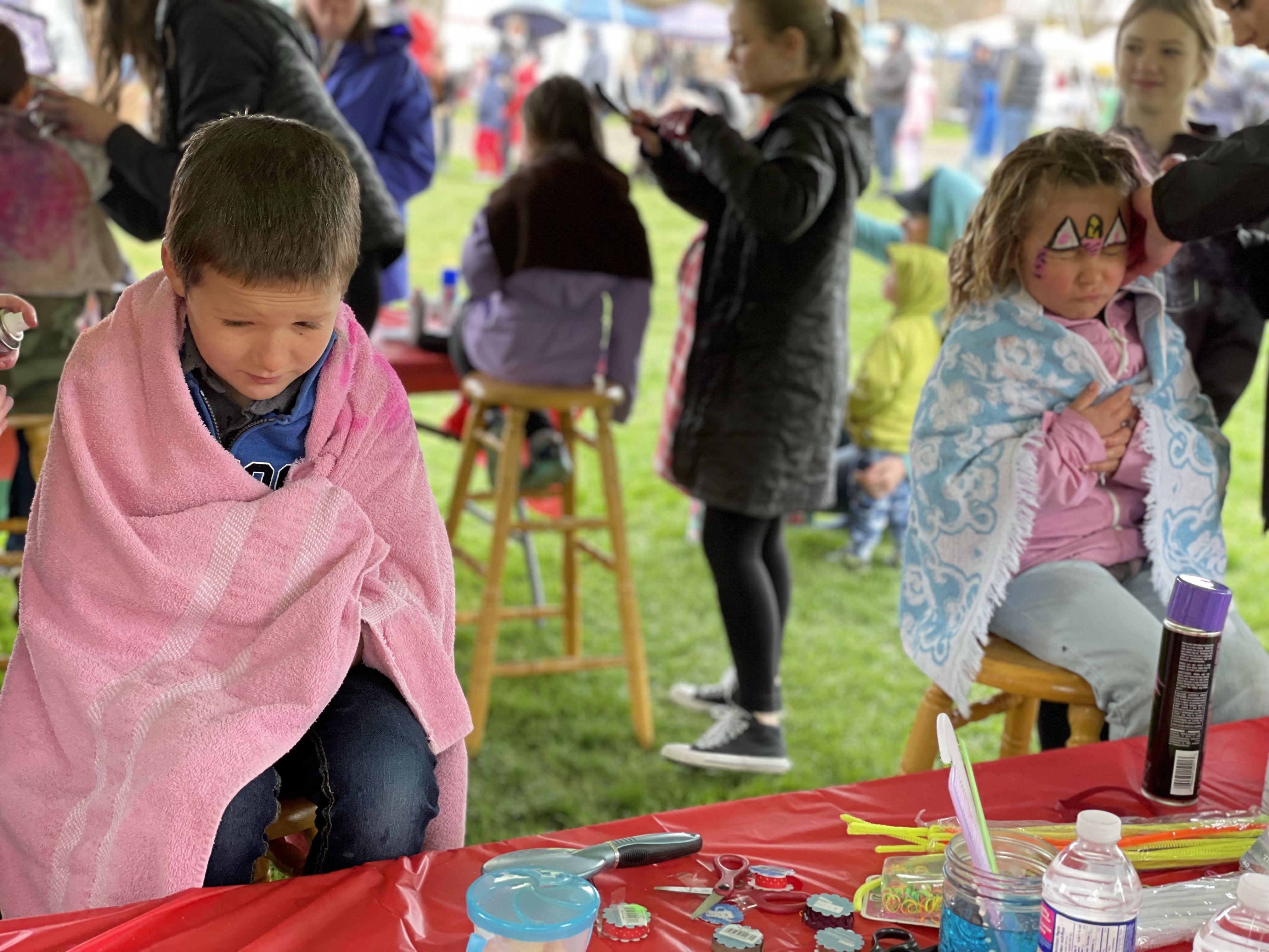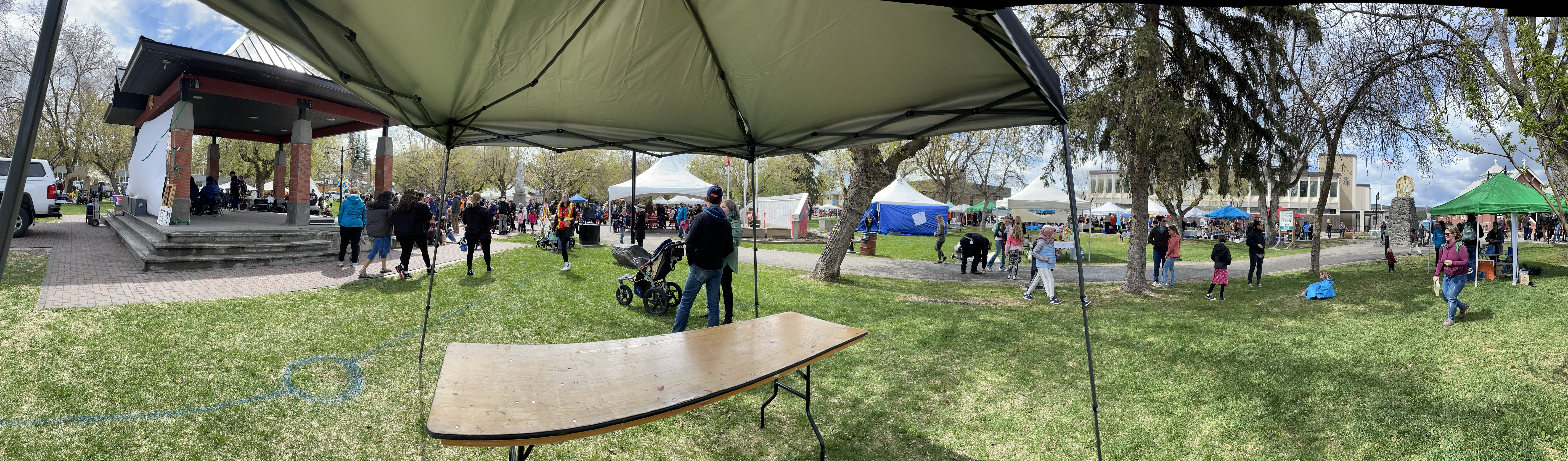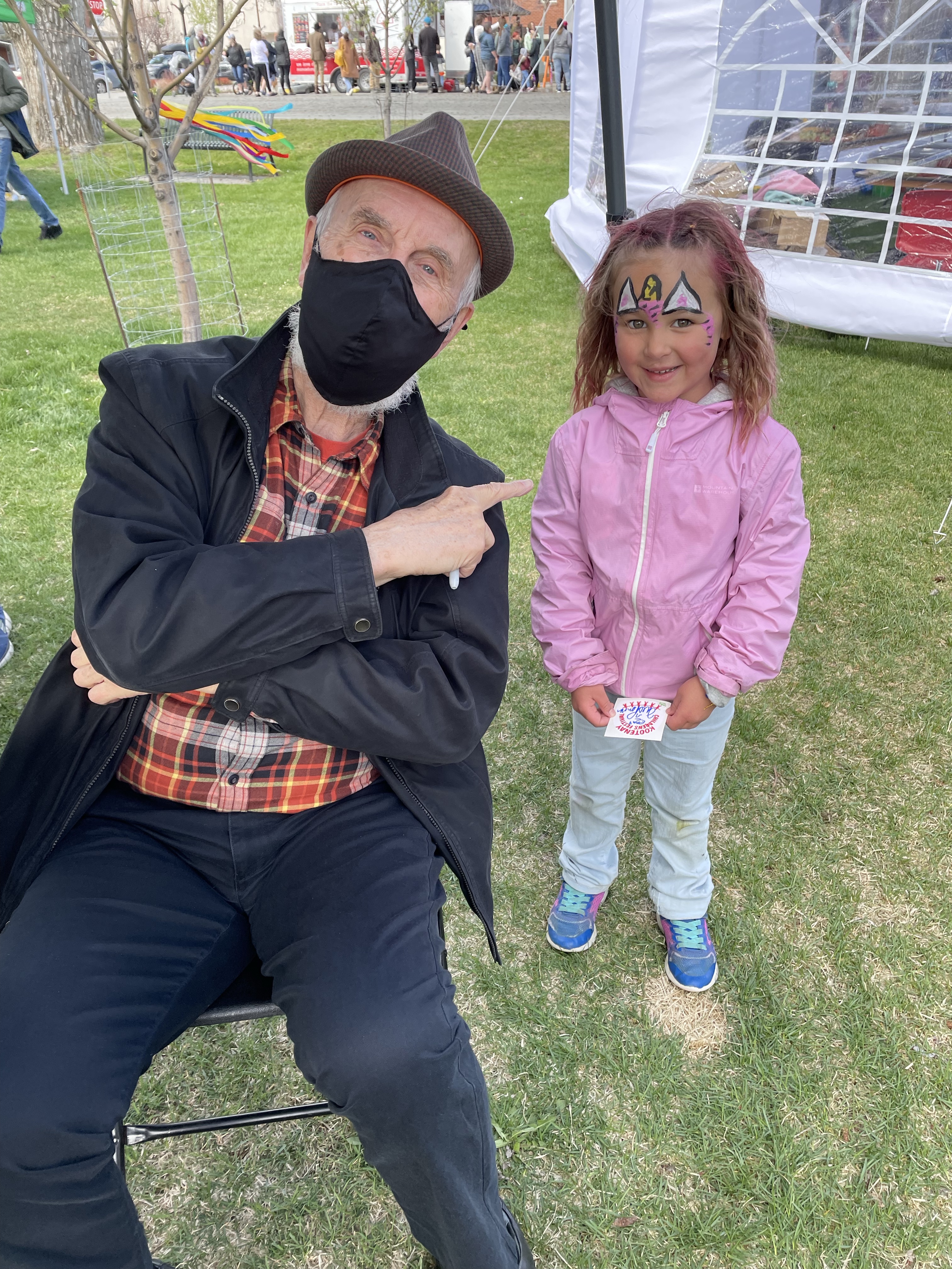 When we were done, they dropped me at home to get my car and I headed to Rotary Park to take in the seasons first Farmers Market and Kootenay Childrens Festival. I wandered the market and ran into a few friends I haven’t seen in a very long time. Eventually I found Rae, Roger and the three youngest who were being followed around by a camera and film guy for documenting the Festival which was kind of cool. I found Danika and the girls in the Face-painting line which was very long but thankfully near the playground. We made it under the tent with Emmy in the chair just as the hailstorm began. Fortunately it turned to rain and then dissipated fairly quickly.