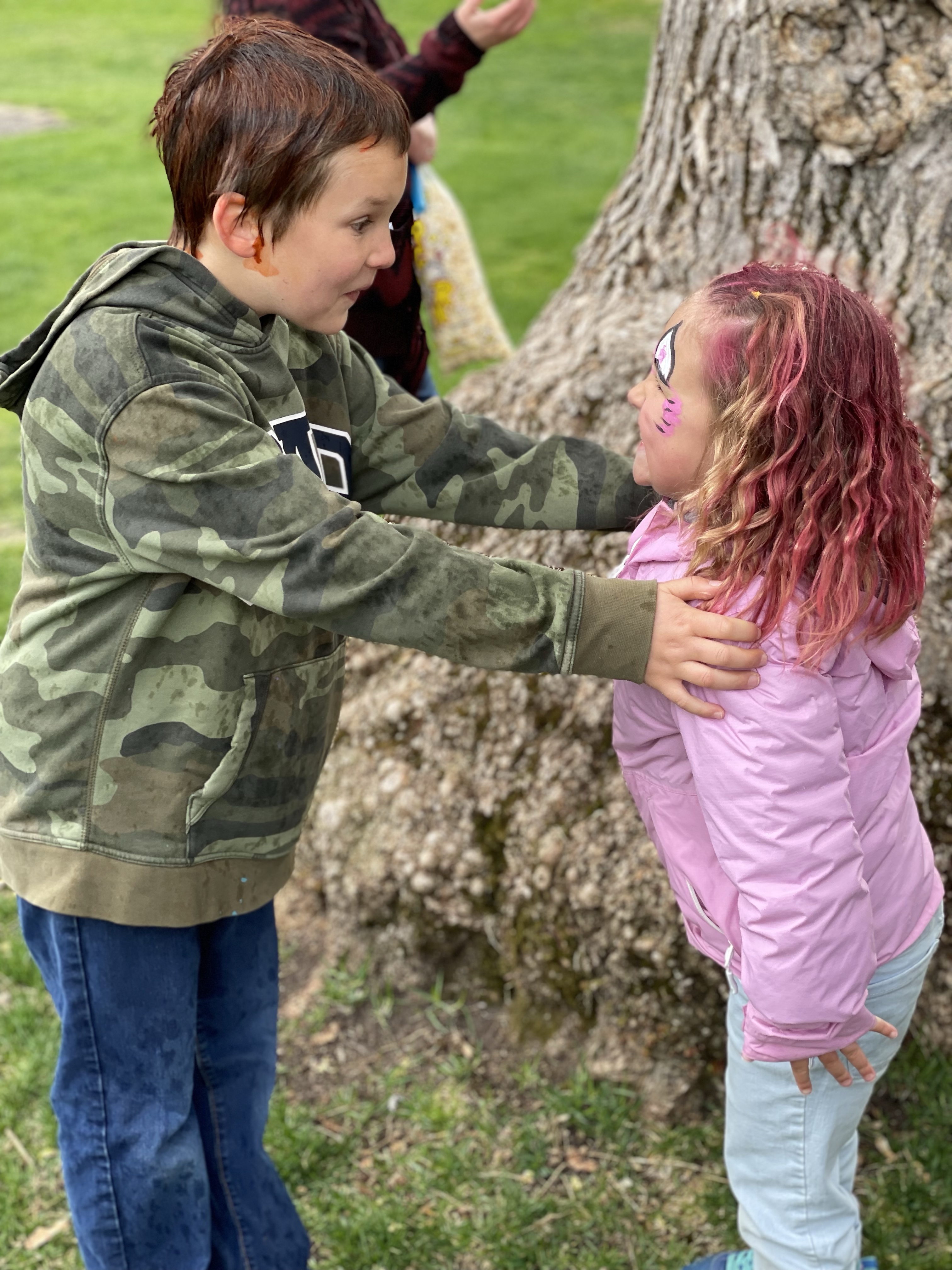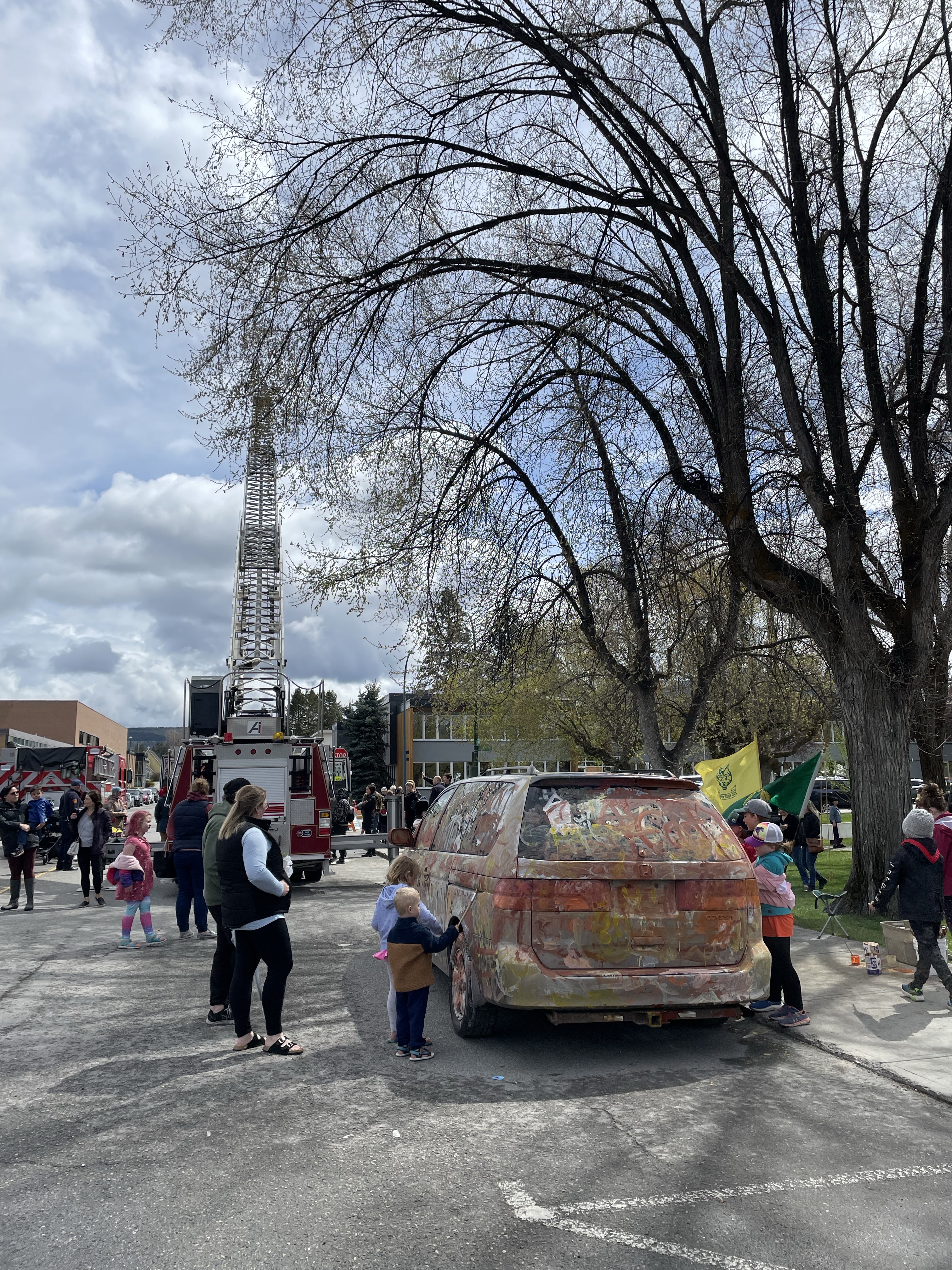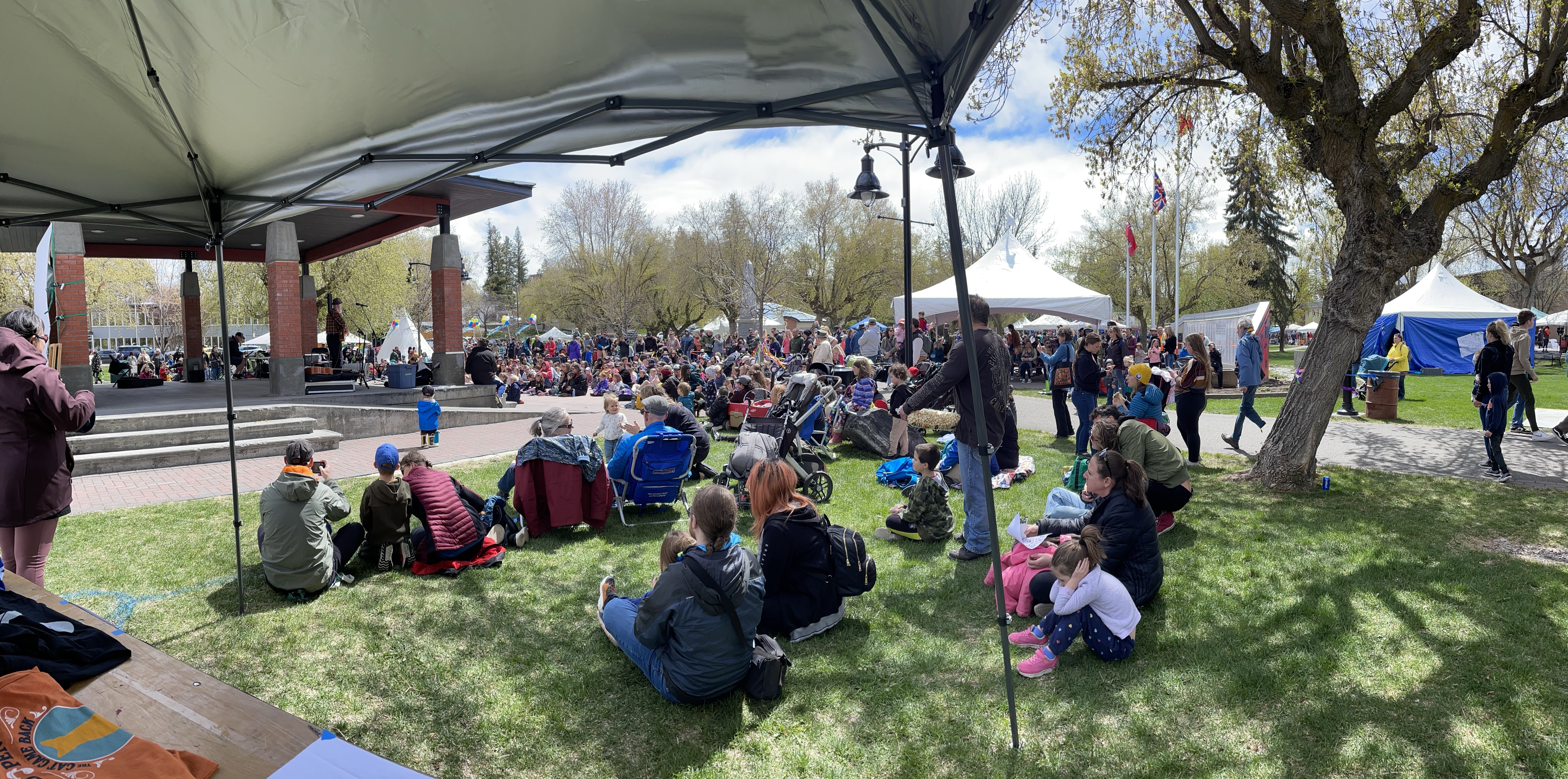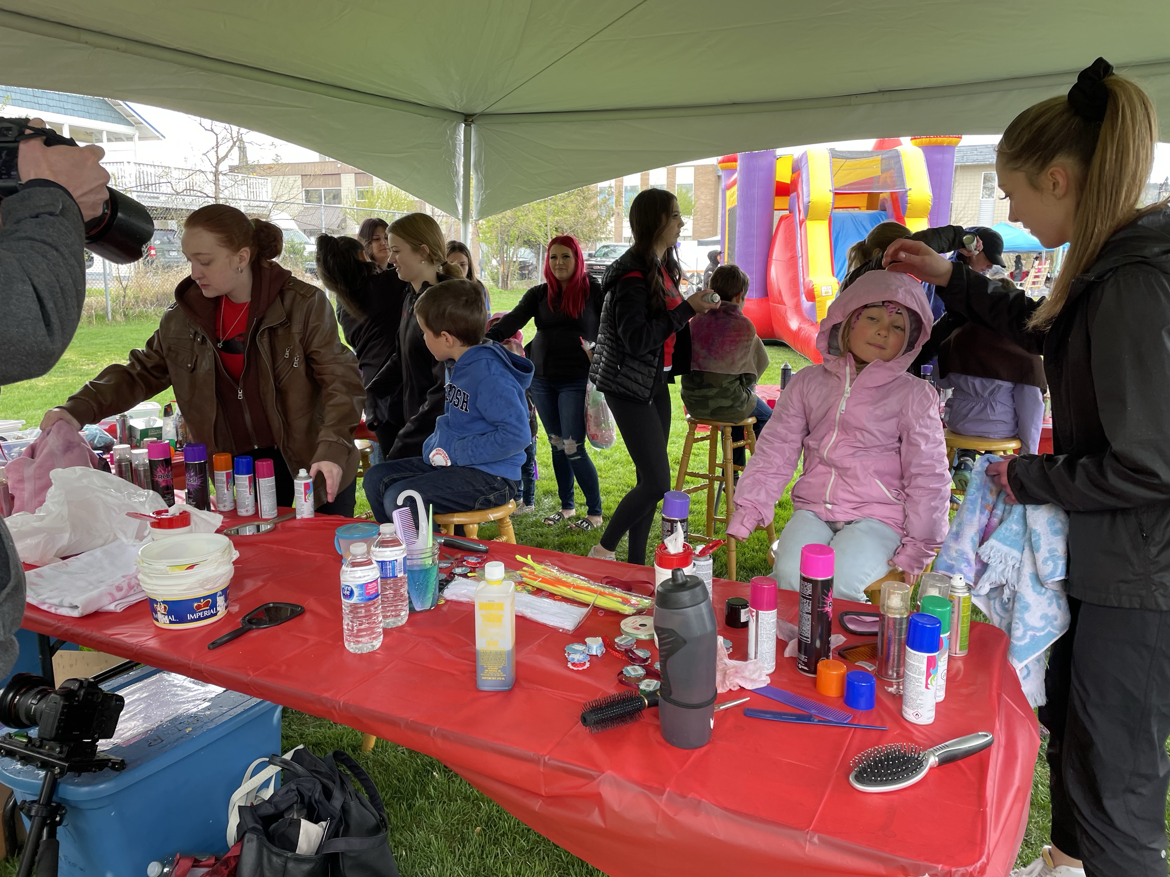 When we were done, they dropped me at home to get my car and I headed to Rotary Park to take in the seasons first Farmers Market and Kootenay Childrens Festival. I wandered the market and ran into a few friends I haven’t seen in a very long time. Eventually I found Rae, Roger and the three youngest who were being followed around by a camera and film guy for documenting the Festival which was kind of cool. I found Danika and the girls in the Face-painting line which was very long but thankfully near the playground. We made it under the tent with Emmy in the chair just as the hailstorm began. Fortunately it turned to rain and then dissipated fairly quickly.
