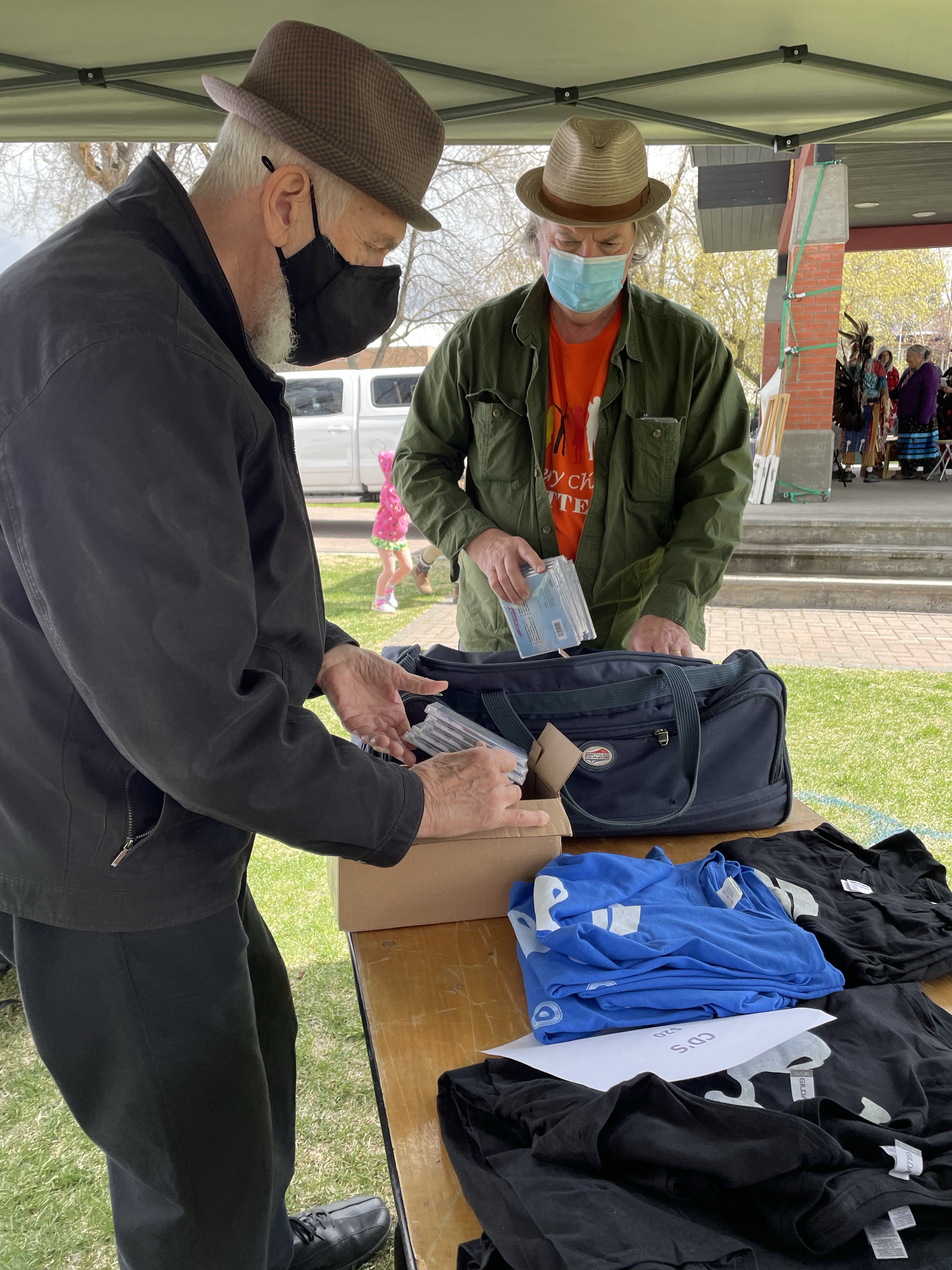 I then left them to start my volunteering time and spent time setting up the Merch Tent for Fred Penner. He and his road manager, Dave were very organized and I sold a ton of stuff for them. I did buy a t-shirt which Fred signed for me after the show. It really is powerful to see the response to him. Kids from 2-82 were giddy in his presence, singing along and dancing. He took time to sign books and posters and CDs and even hats. We had a nice chat about the fact he won’t get a chance to fit into the lineup at MusicFest this year but that I will see him there, visiting backstage and enjoying the shows.
