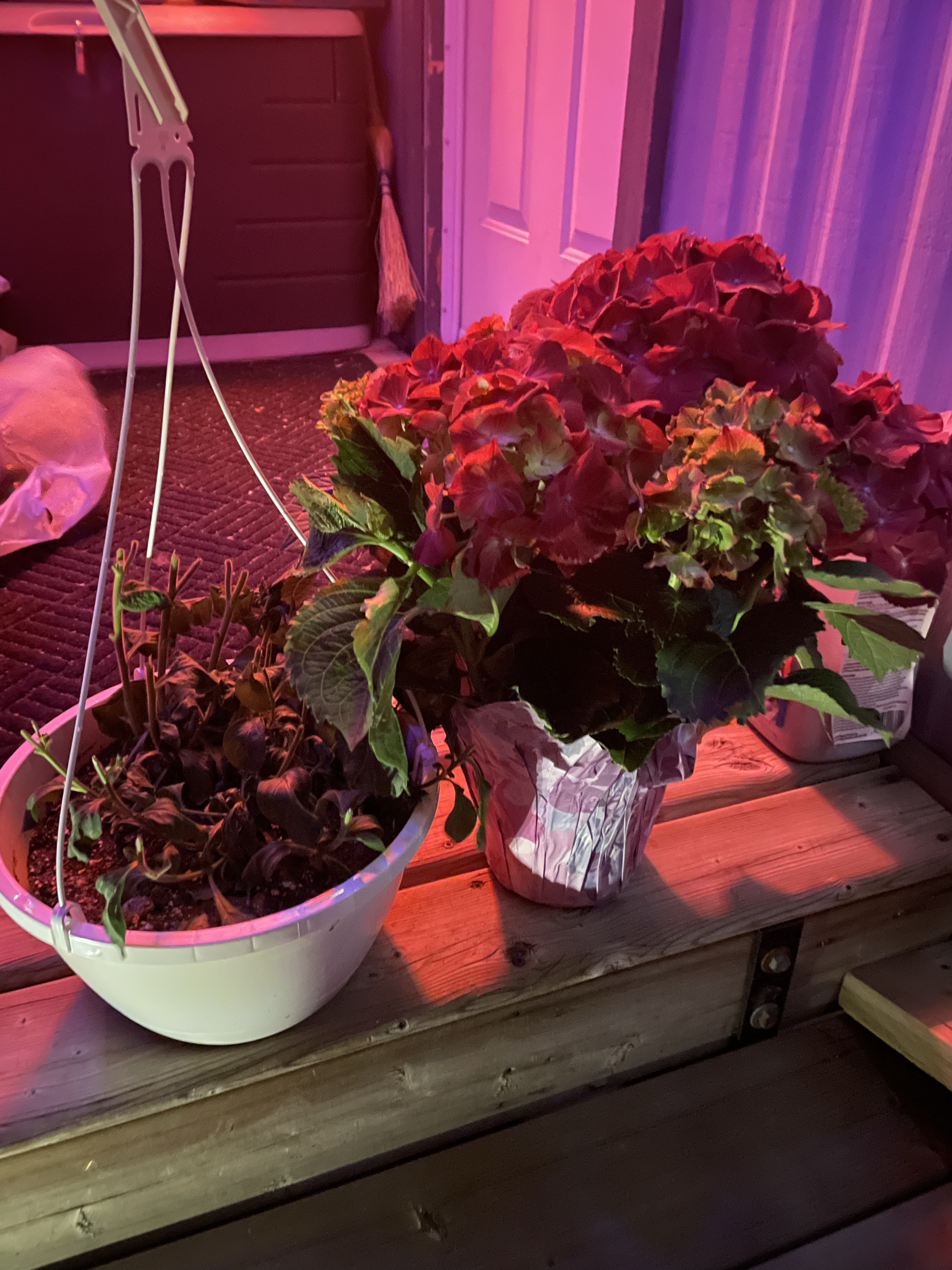 Dinner was at Rae-Anne and Rogers, shopped and cooked for by Bill and Roger. The brought Rogers mom From the home she is in for dinner as well and it was bitter sweet as we know that tomorrow she will be told she is moving to the Green home where her husband is because her mental issues have made it that she cannot stay where she is any longer. It will be a big and stressful change for her. While we were all visiting, Chevelle, the lovely young daughter of the friends next door brought over flower baskets that she made at school as gifts. She was sad because the deer got to them but I told her it would be a surprise what colour the flowers would be when they bloomed again.