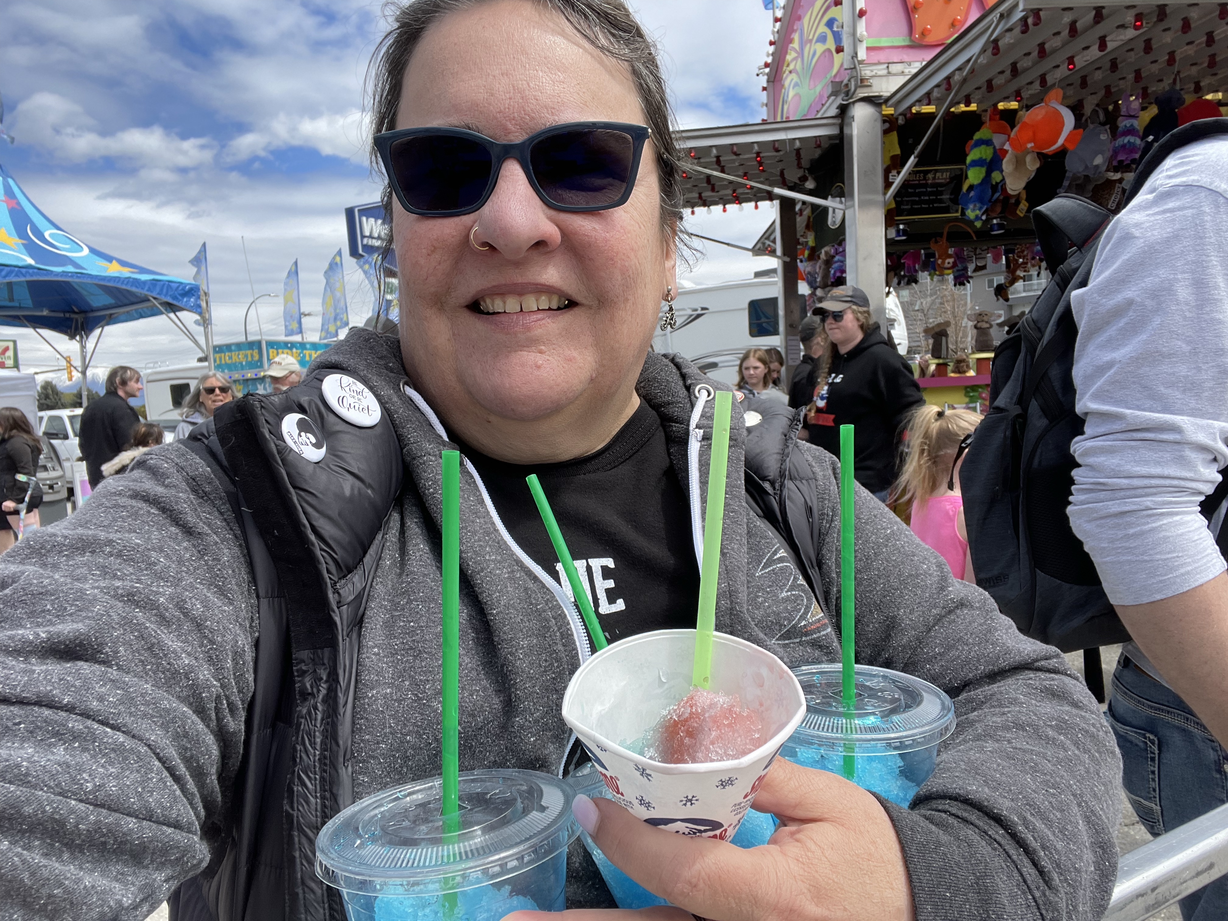 Today began with sideways rain and sleet, contained many issues with electronics and other people calling for help, and ended with a swing by the fair before stopping at the Market and Safeway where many pleasant conversations occurred. Another lucky day after all.