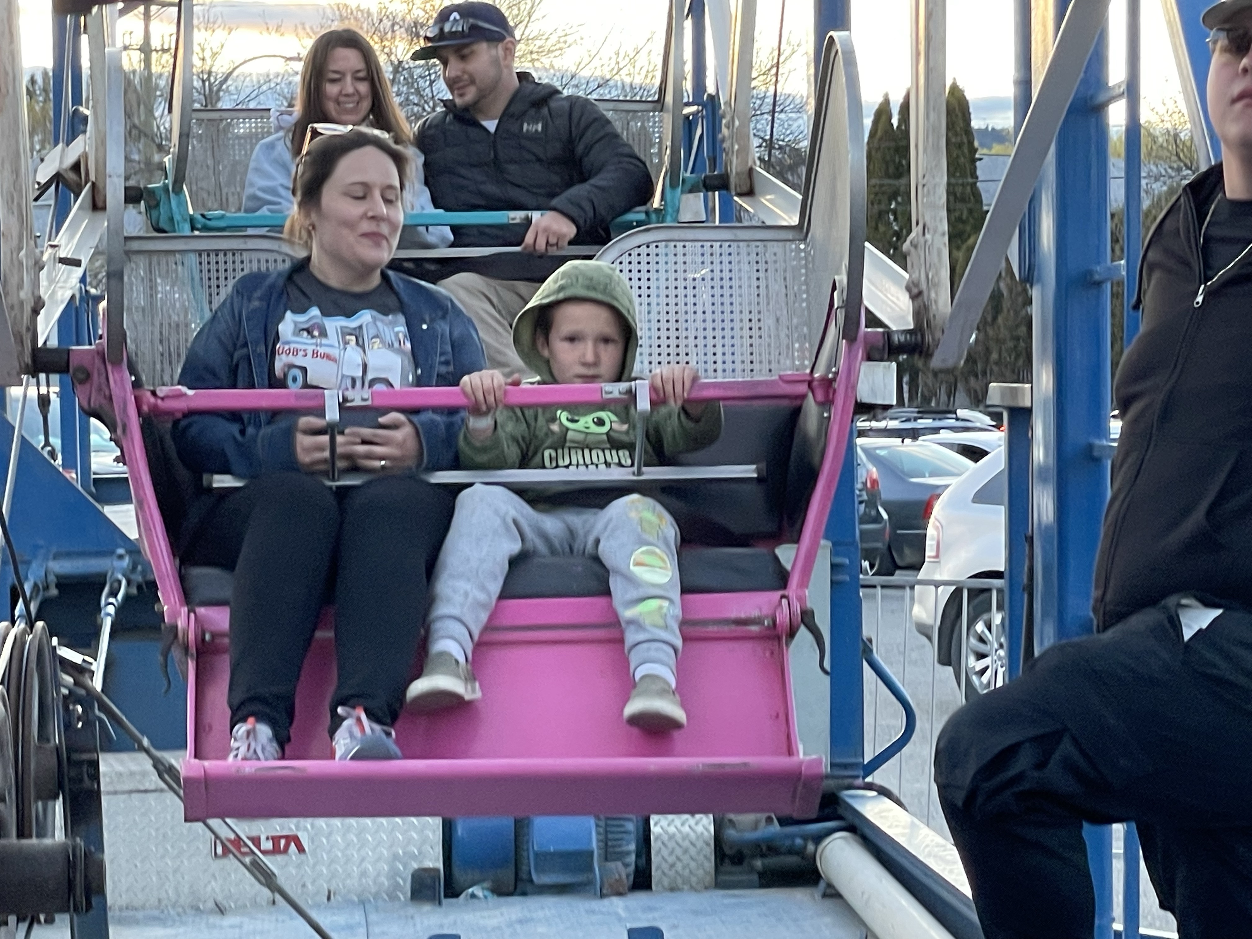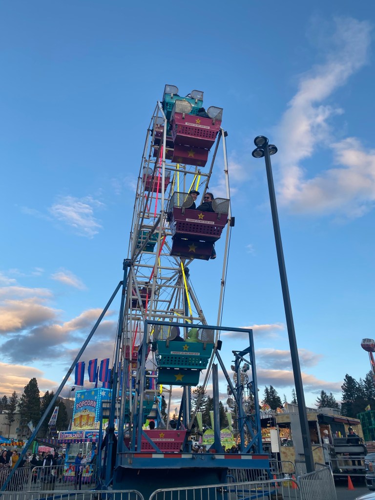 On the way home I stopped at the fair to meet with the family again and got in line for one last ride on the Ferris wheel. The people behind us gave tickets to Rae so she could ride with Sawyer who panicked for a moment but ended up enjoying it.