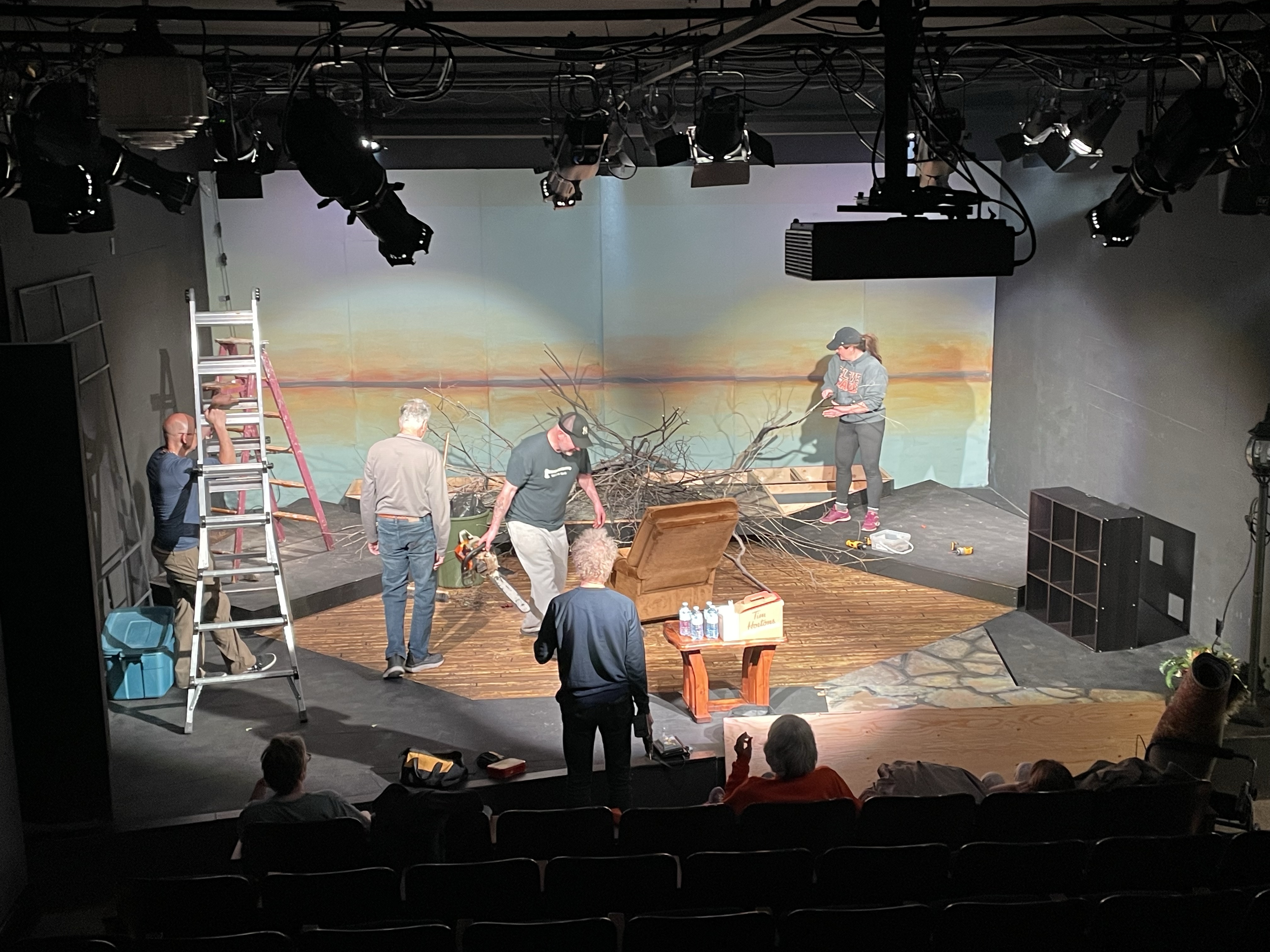 I was at the theatre for 10 am to attend a directing comedy workshop conducted by Kevin McKendrick. There were 9 of us, 8 friends and one new person to the circle got to spend the day together learning so many great skills. Many things I use as a director were confirmed as useful and I also learned some great ways of working with business, adding to the script without text. It was really a joy to spend 6 hours with people of a like mind, doing what we love. I was inspired to Direct again, maybe in 2024 as the next season is already set. Kevin is a very good instructor, and actor as we saw in his examples. He accepted everything we threw out there and ran with it, fine tuning the thought or suggestion. I really wish to be directed by him but he is in Vancouver. At lunch it was missed that I am allergic to peppers and every single part of it was loaded with them. I popped out to Sakura Sushi for some tempura and edamame. The part that made me sad was that the smell was so strong in the lobby where everyone was eating that I had to go sit by myself on the stage to eat. I didn’t like missing out on the conversation and connection but Kevin did come and sit with me for a while and we found quite a few people from the time I was at Studio 58 with that he knows or knows of and we had a few good laughs. It was nice to talk to someone who understood how special it was being taught by the instructors there at the time, especially fencing from Antony Holland.