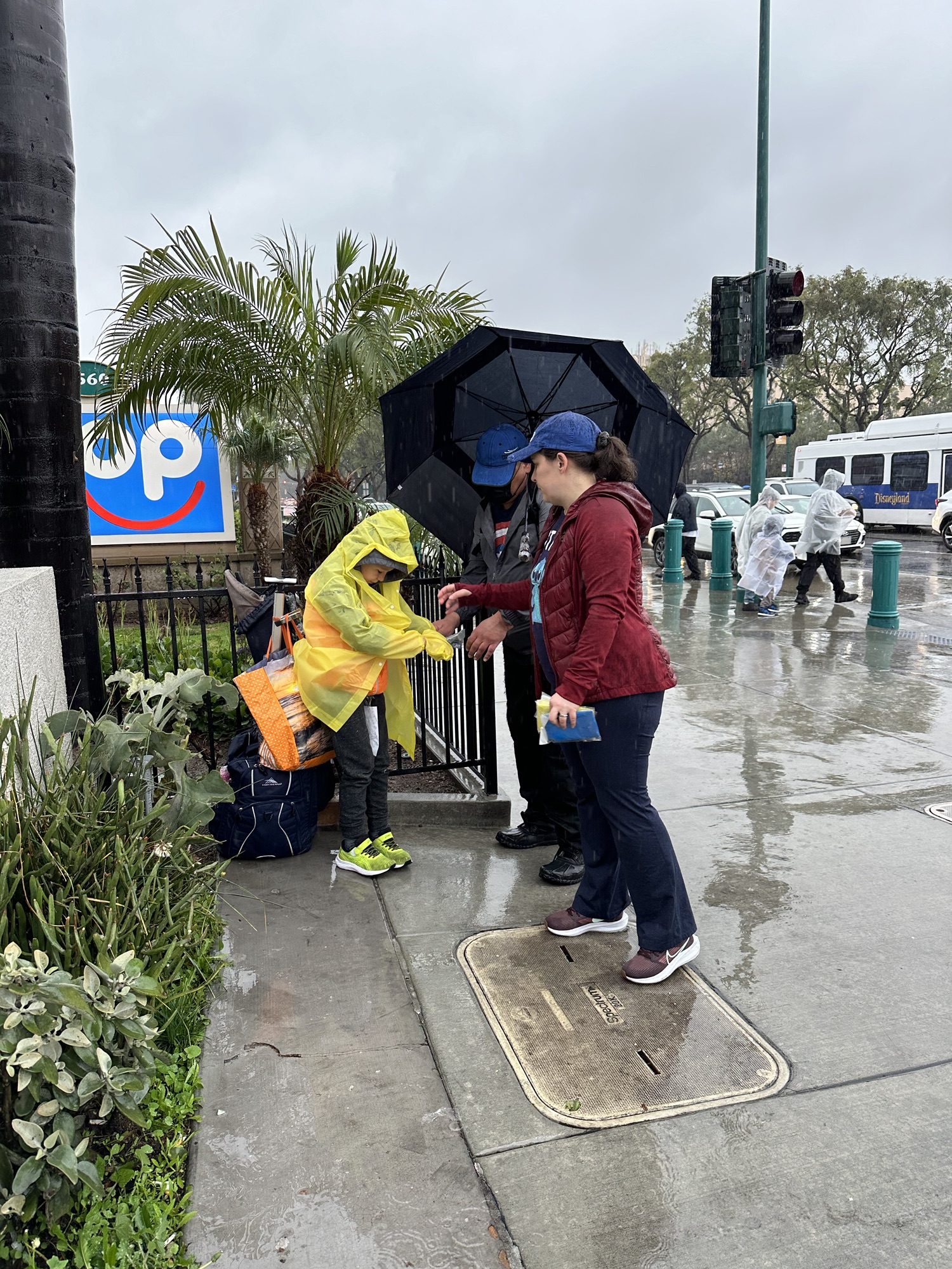 Everyone was there already with Emmy on the way. I got so caught up with the excitement of getting her through, especially after she was random selected for swabbing, that I forgot to pay for my parking and the app did not function well so I was advised by the WestJet agent just to use the kiosk. It was 64 for the week! Back through security again and finally we were loading and on our way. It was a small plane to Calgary and a bit bumpy but everyone seemed to take it well. Once in Calgary Emmy and I used the moving sidewalks for the first part of our long way between gates and then caught the cool shuttle the rest of the way. We had stopped at Duty Free and I didn’t feel guilty at all about putting it in her suitcase. We were on a flight to a different airport and left an hour later than everyone else so we sat and I had breakfast while she managed to spill her apple juice. Thankfully none got on any travel stuff. We were able to check her carry on through for free and that helped a lot. Unfortunately we got the only row with a window seat with no window. That was disappointing but we rolled with it and had a very nice journey. She coloured and modeled clay and snacked on goldfish and listened to music and chatted. I read and napped a bit and chatted. I had bought a travel pillow years ago and finally tried it out. I love it!! It attaches to the seat so it supports your head and cushions it in an upright positions and fits back into a lovely bag. And finally we were landed in California.