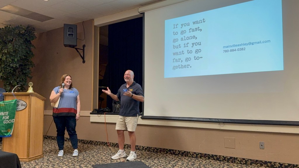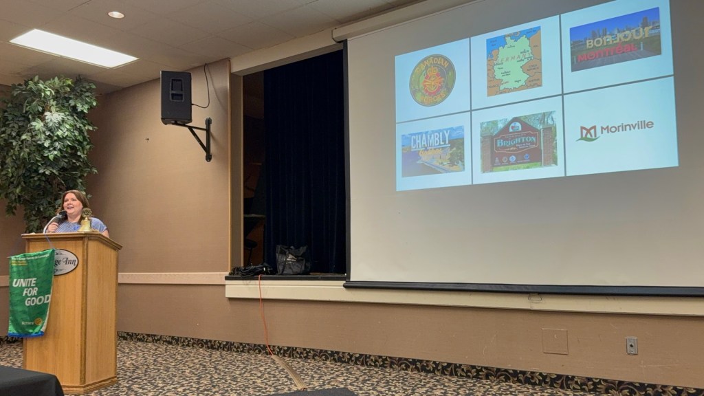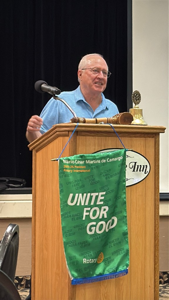 Today was actually pretty great. I gave my Rotary convention PowerPoint presentation at lunch and it was very well received. Unfortunately, I couldn’t eat lunch and the smell was incredibly overpowering enough to make me feel a little icky afterwards as they served up roasted peppers. Rick told how he got back our gravel that had been taken when Steve Roberge visited. He in turn stole their gavel. It was a fun meeting.