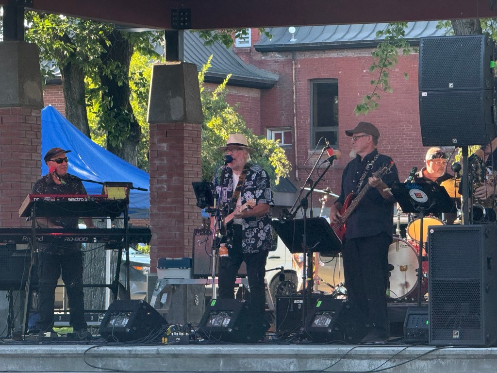 I headed to Fenwick & baker after work, hoping to meet up with Dave but it turns out he had tied one on last night and had to get up super early tomorrow morning so wasn’t available I had a great visit with Michelle who has given her notice as the head chef in the kitchen and will be going to work at a gold mine in Ontario. She will be two weeks on two weeks off, so I will get to see her, which is nice. After I had something to eat I wandered over to the park for summer. Sounds hoping to catch T3 and the sonics Jamie Neve’s new band. Charity standing orders was still playing as I guess they got started late and things were disorganized as always this season. I hung out for a little while and actually had a nice talk with Jamie before he played. We have both decided not to try to solve all the problems. I also had a nice visit with Barb Phillips and Ethan Askey before deciding to head back home. It is still hard as it used to be so much fun to be there.