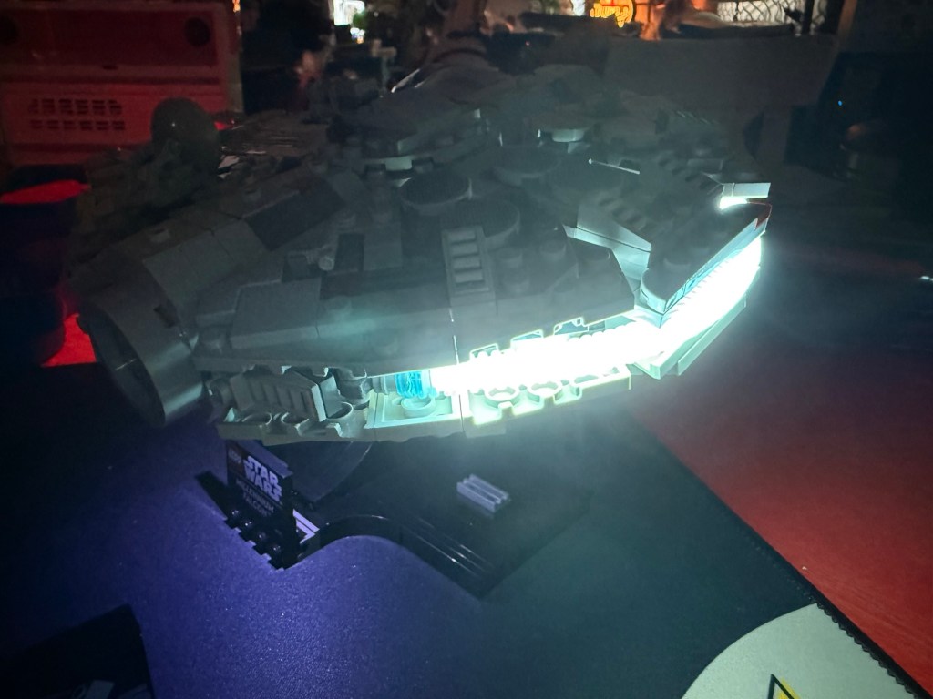 I stopped to make some dinner which was delicious and then continued on. I tested it with the lights and sound and it was incredible and then I undid a wire and it turns out it must’ve been some kind of a ballast because the board started to smoke and only two of the lights come on now. I will have to order a new part, boo. At least it’s all together now and looks great and the sound and lights were pretty fantastic with a remote control that made them flash and change and it made all of the cool droid sounds. I don’t plan to do any more of the older ones with lights. The directions are very unclear, the parts weren’t what was shown in the pictures for the lighting system, etc. so I was just glad that it all worked in the end. It still looks pretty cool for now though so I’ll put it up on my shelf and wait for the part to come.
