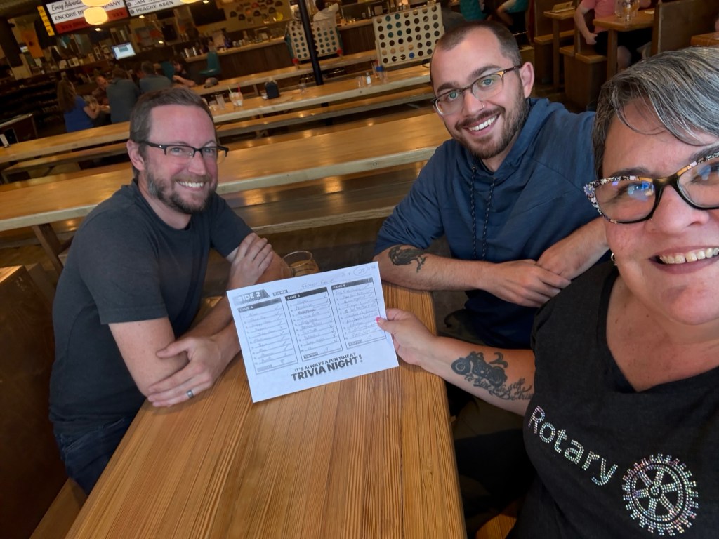 After work I went to Encore with my Mac and the rider binder and worked on a spreadsheet until Jill and Brett arrived for trivia. JD showed up and we were a well rounded team. We came in second by only one point. It was fun and I enjoyed it.