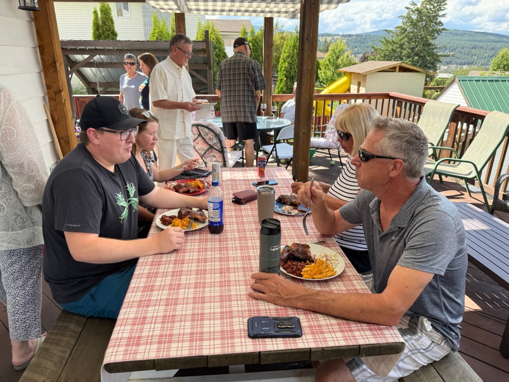 I went to the office and spent a couple hours putting together a PowerPoint of the Rotary international conference for the Thursday meeting. It turned out pretty great, just have to decide what to say. I then started working on the Rider list for Rock the Kootenay. After that I headed to Dave and Deb’s for 5:30 BBQ.