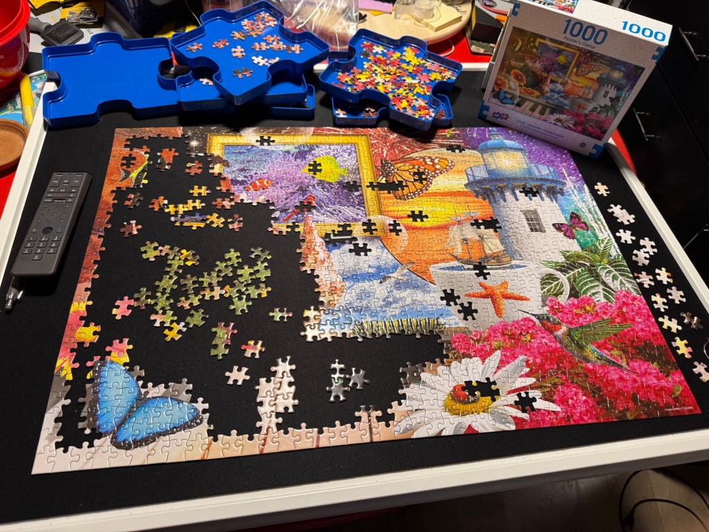 I came home, continued working on my puzzle and made some delicious turkey tacos before finishing the puzzle, having one of my enhanced beverages and watching a bit of White Lotus before bed the puzzle was harder than some, easier than most and there was one piece missing